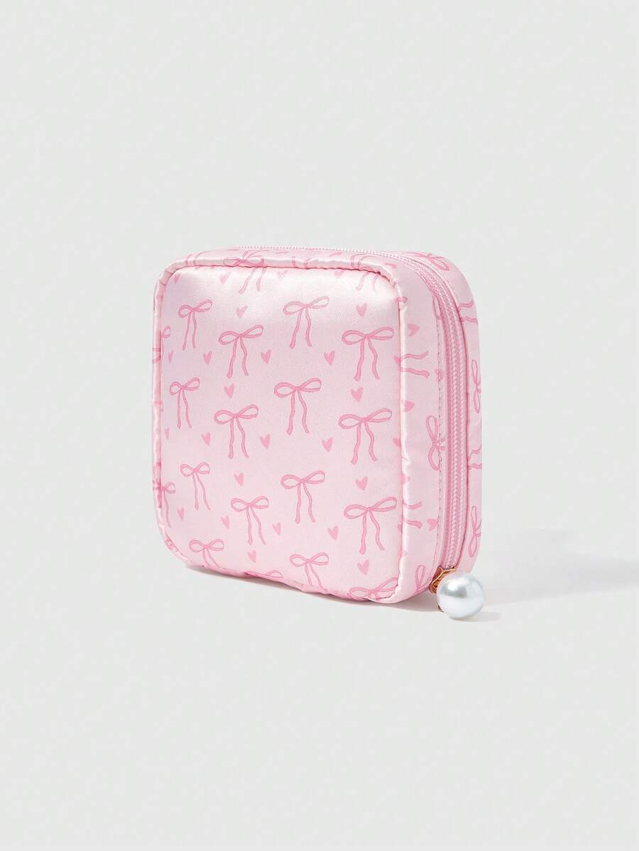 Kawaii Cute Pink Bow Design Thick Padded Large Capacity Portable Makeup Bag