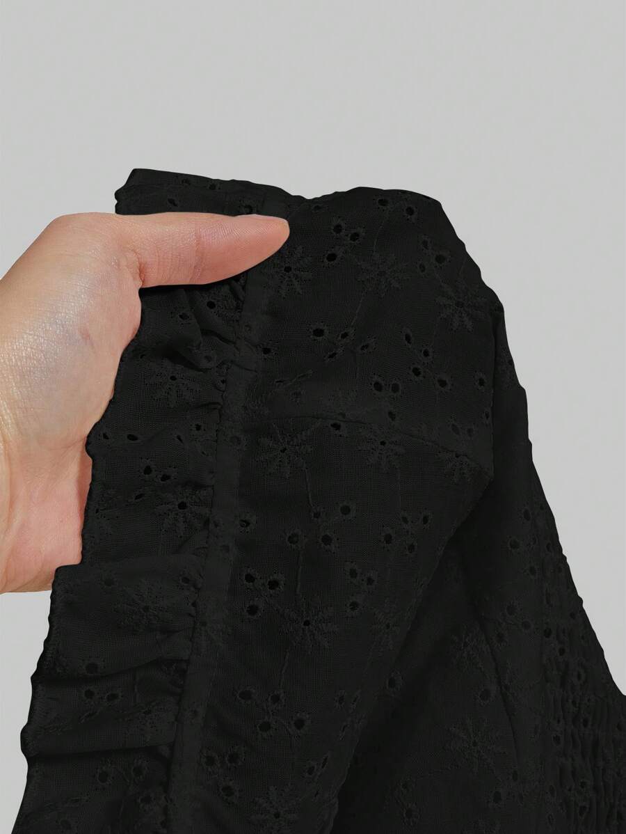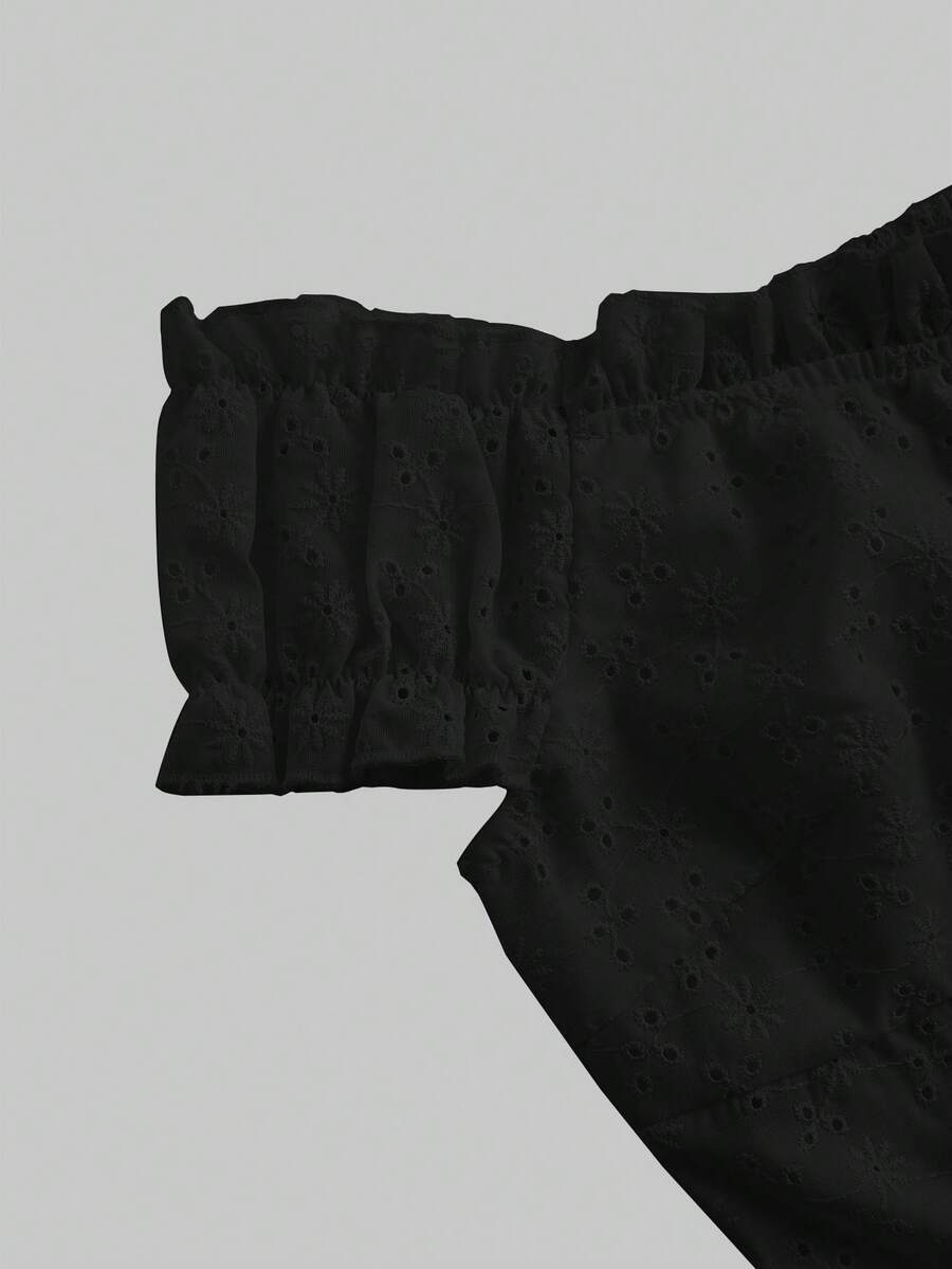Kawaii Elegant Ladies Off Shoulder Lace Trim Embroidery Flower White Solid Color Ruffle Sleeve Blouse