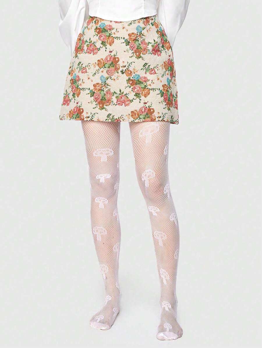 Kawaii Elegant White Mushroom Net Pantyhose