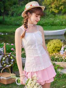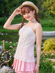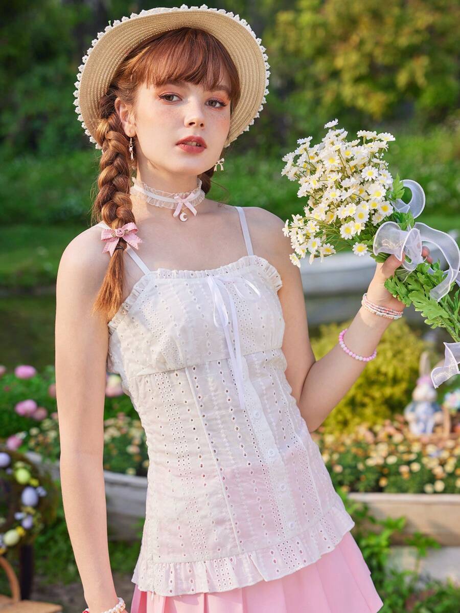 Kawaii Eyelet Embroidery Frill Trim Cami Top Tea Party Attire