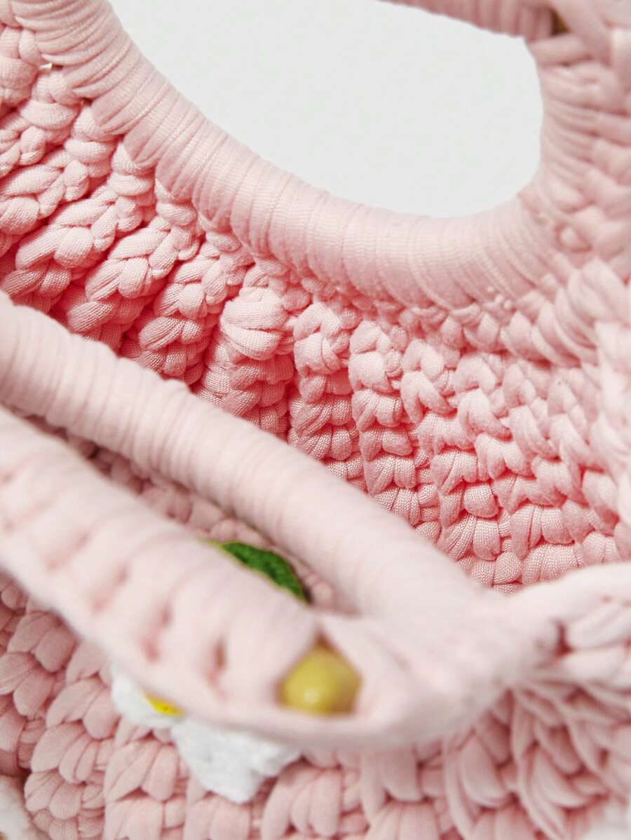 Kawaii Fashion Casual Woven Pink Tote Bag With 3D Floral Decoration Valentines