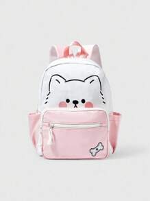 Kawaii Fashion Colorblock Cartoon Cat School Backpack, Casual Lightweight Large Capacity Traveling Bag For Women And Girls