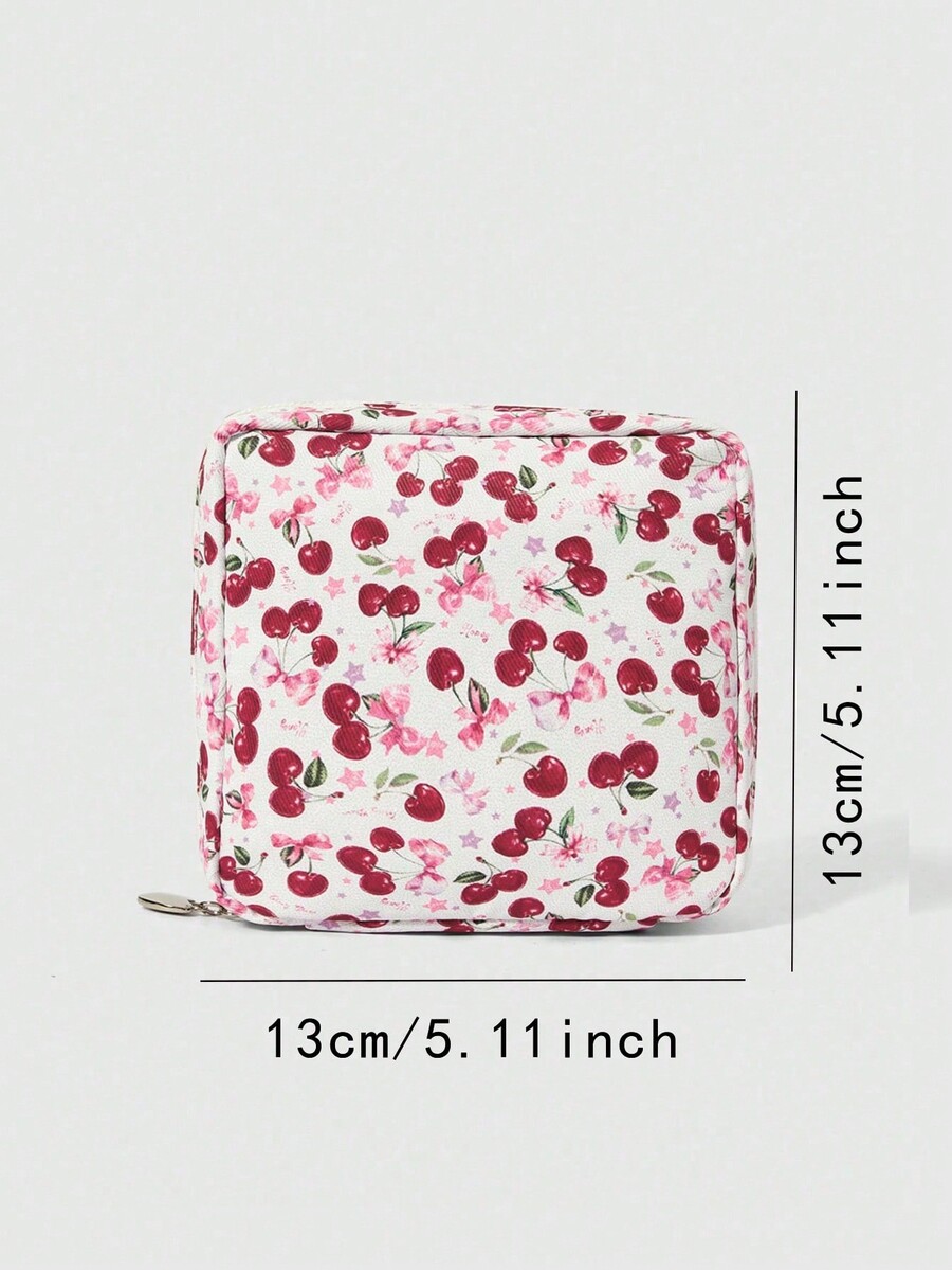 Kawaii Fashionable Cartoon Cherry Thicken Padded Large Capacity Portable Cosmetic Bag Mini Square Pouch 741771