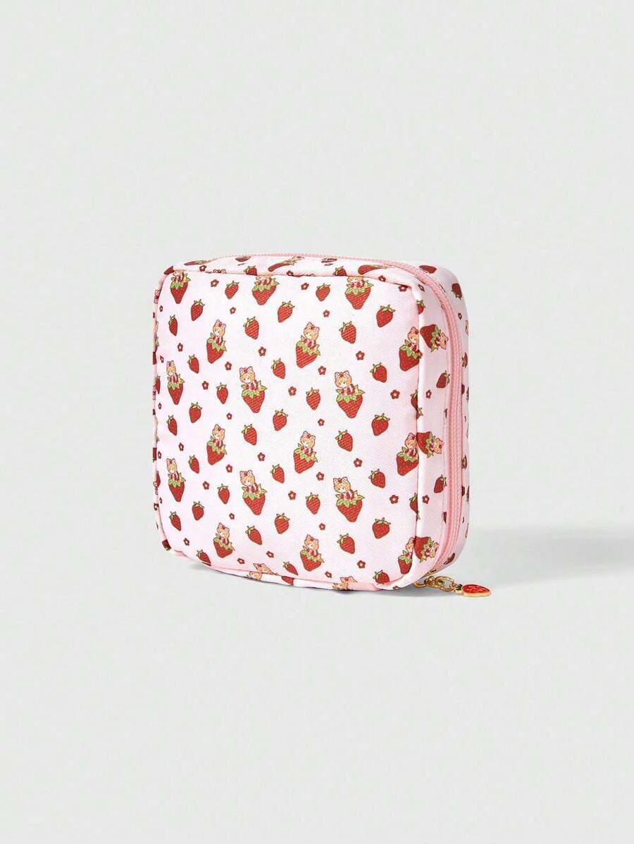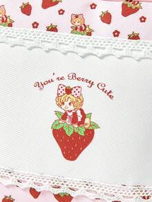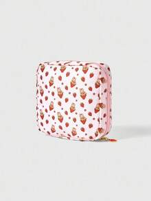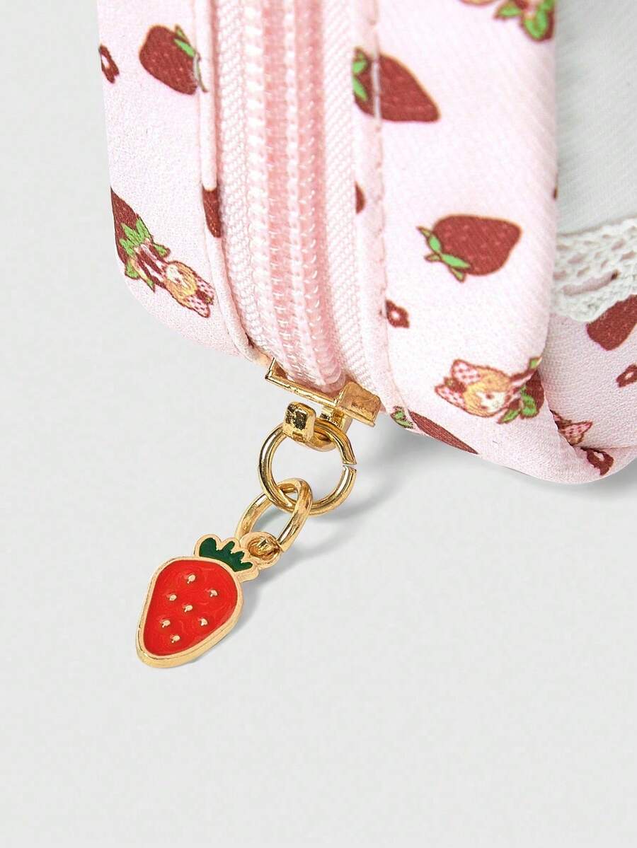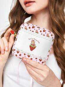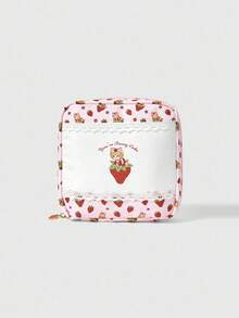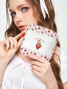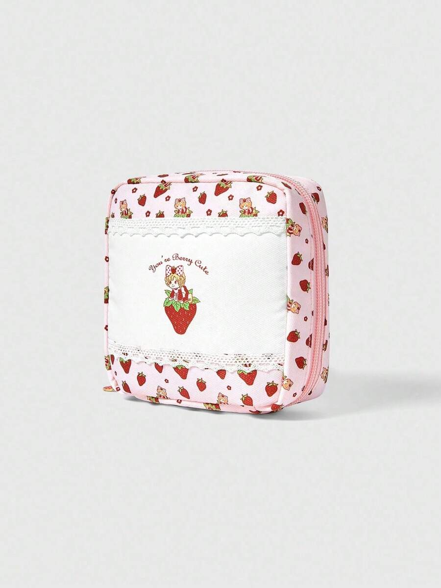 Kawaii Fashionable Cartoon Contrast Lace 2 Grid Retro Girl Thick Padded Large Capacity Portable Cosmetic Bag, Small Square Bag 442464