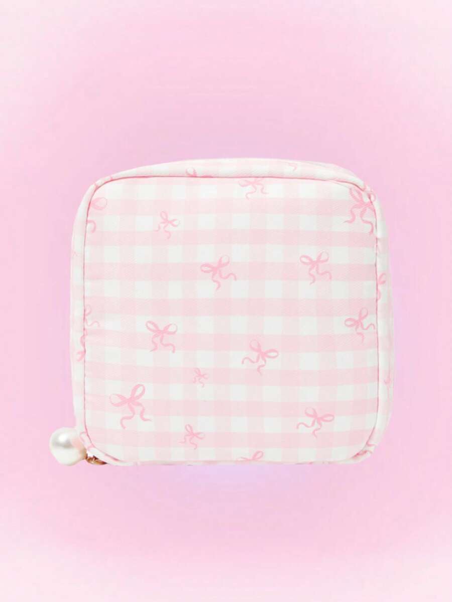 Kawaii Fashionable Cartoon Retro Girl Thickened Padded Large Capacity Portable Cosmetic Bag, Small Square Pouch