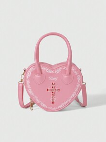Kawaii Fashionable Contrast Color Cross Floral Print Handbag With Heart Design For Women Valentines