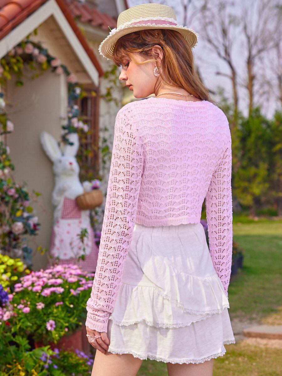 Kawaii Floral Patched Tie Front Cardigan