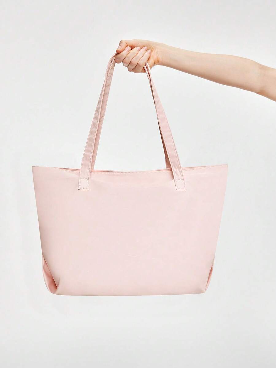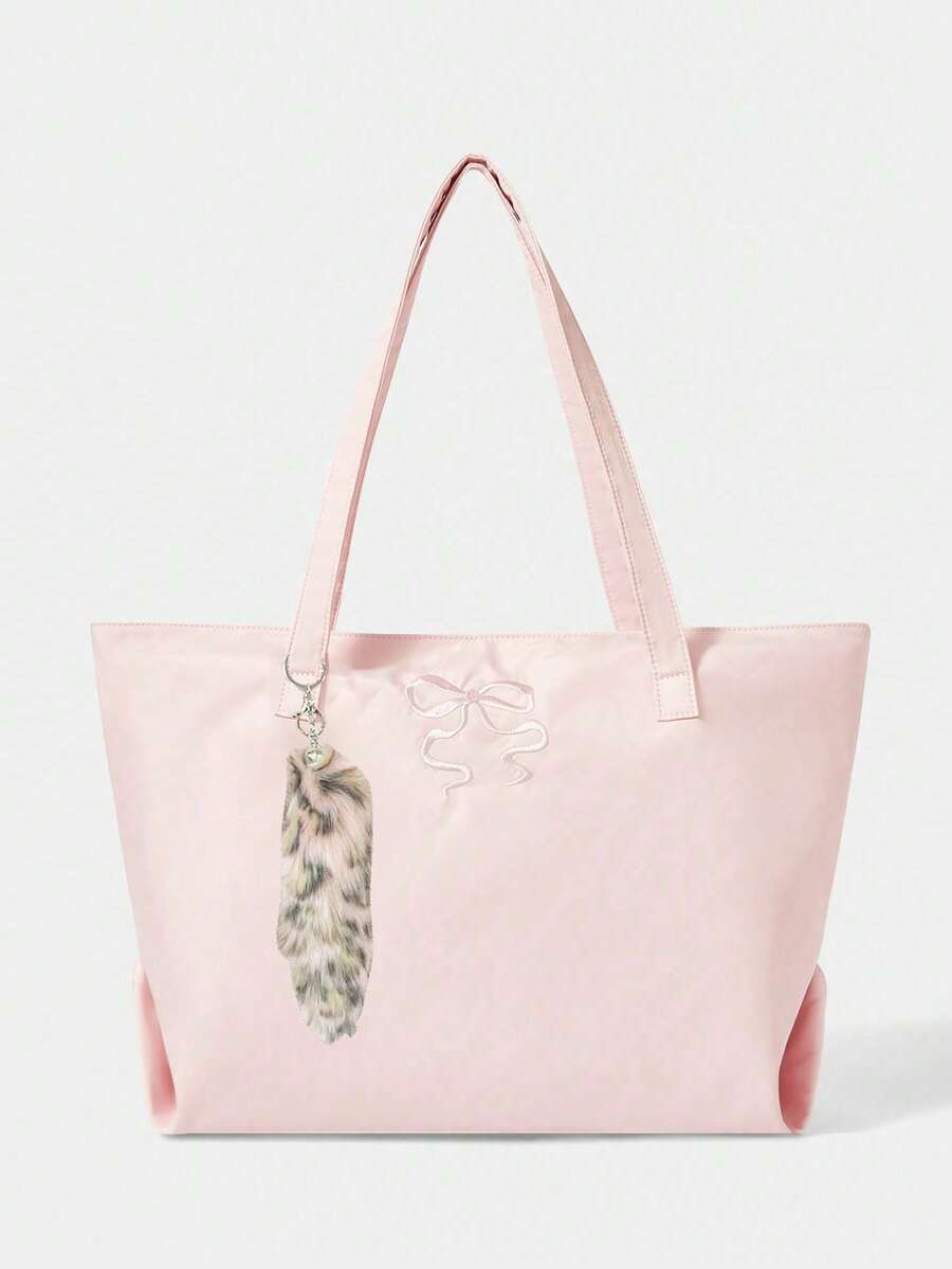 Kawaii Floral Pattern 84225 - Bow Embroidery Large Capacity Shoulder Bag, Fashionable Oxford Cloth Tote Bag, Fashionable Tote Bag With Zipper, Fashionable Bow Purse For Women, Tote Bags For Women, College Essentials