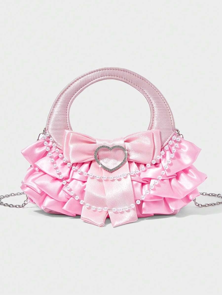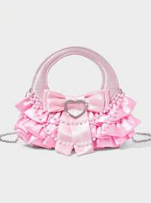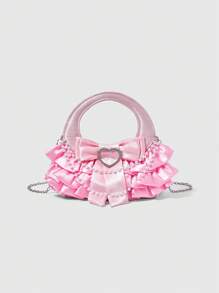 Kawaii Girls Floral Lace Pink Bow & Heart Top Handle Bag
