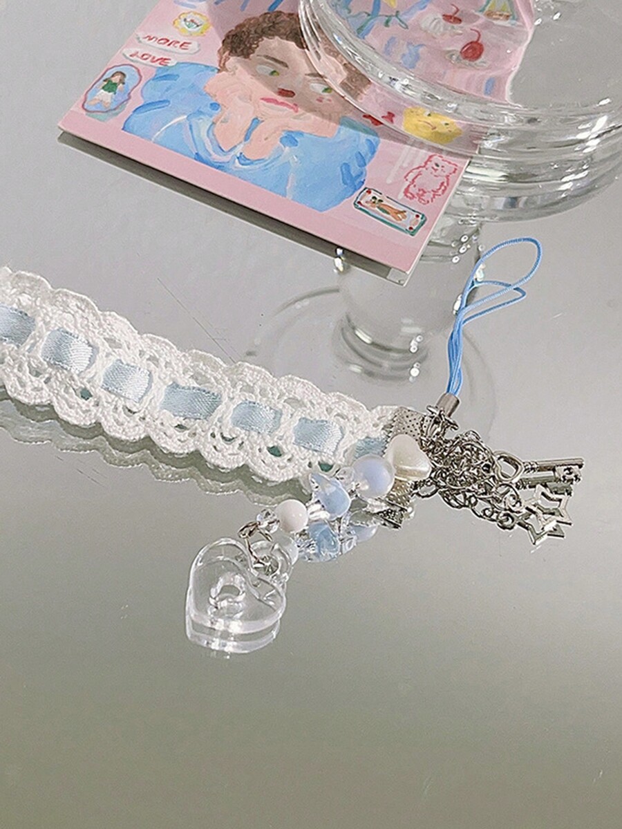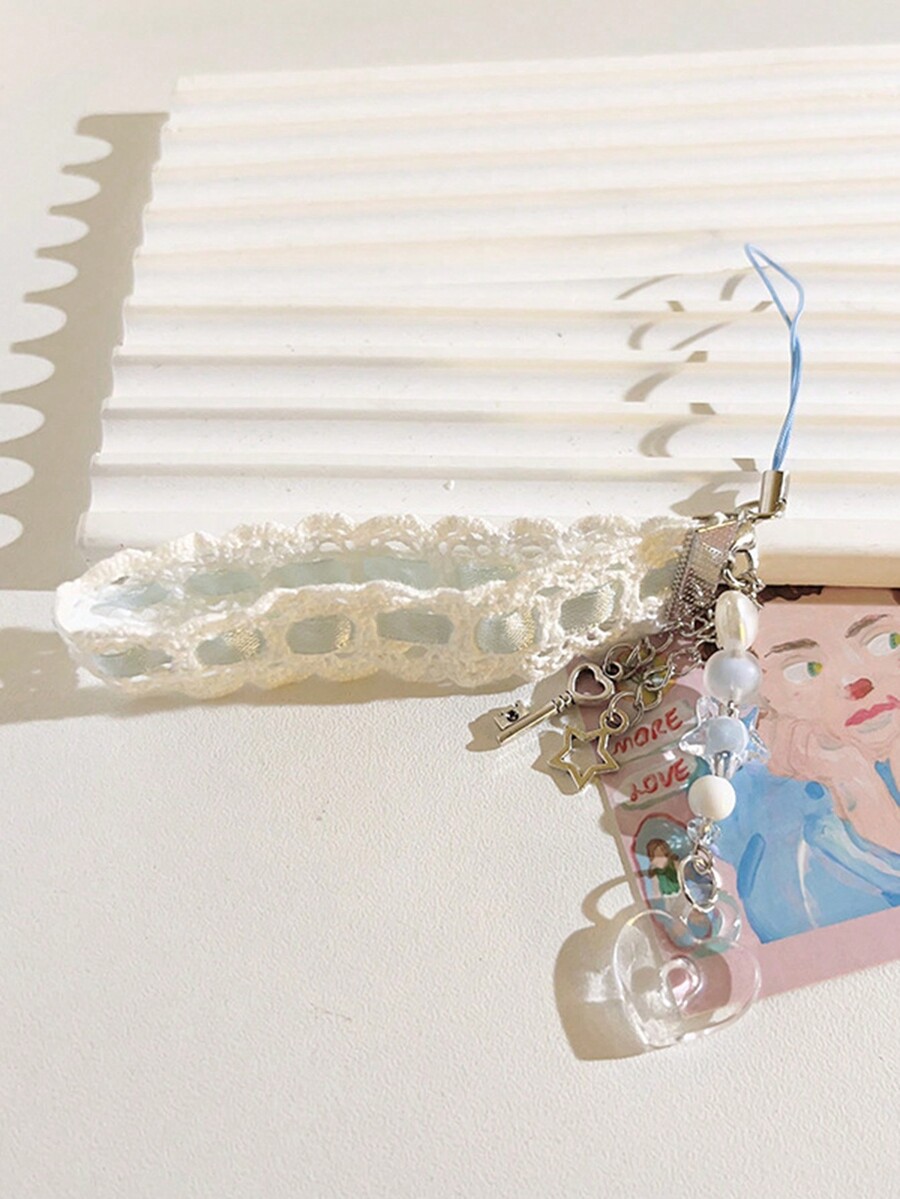 Kawaii Handmade Lace Star Love Y2k Cute Girl Beaded Mobile Phone Case Chain Card Book Pendant Earphone Case Mobile Phone Case Lanyard
