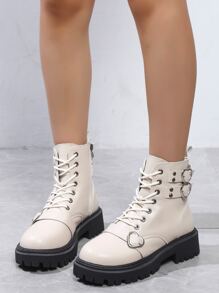 Kawaii Heart Buckle Decor Zip Side Lace-up Front Combat Boots