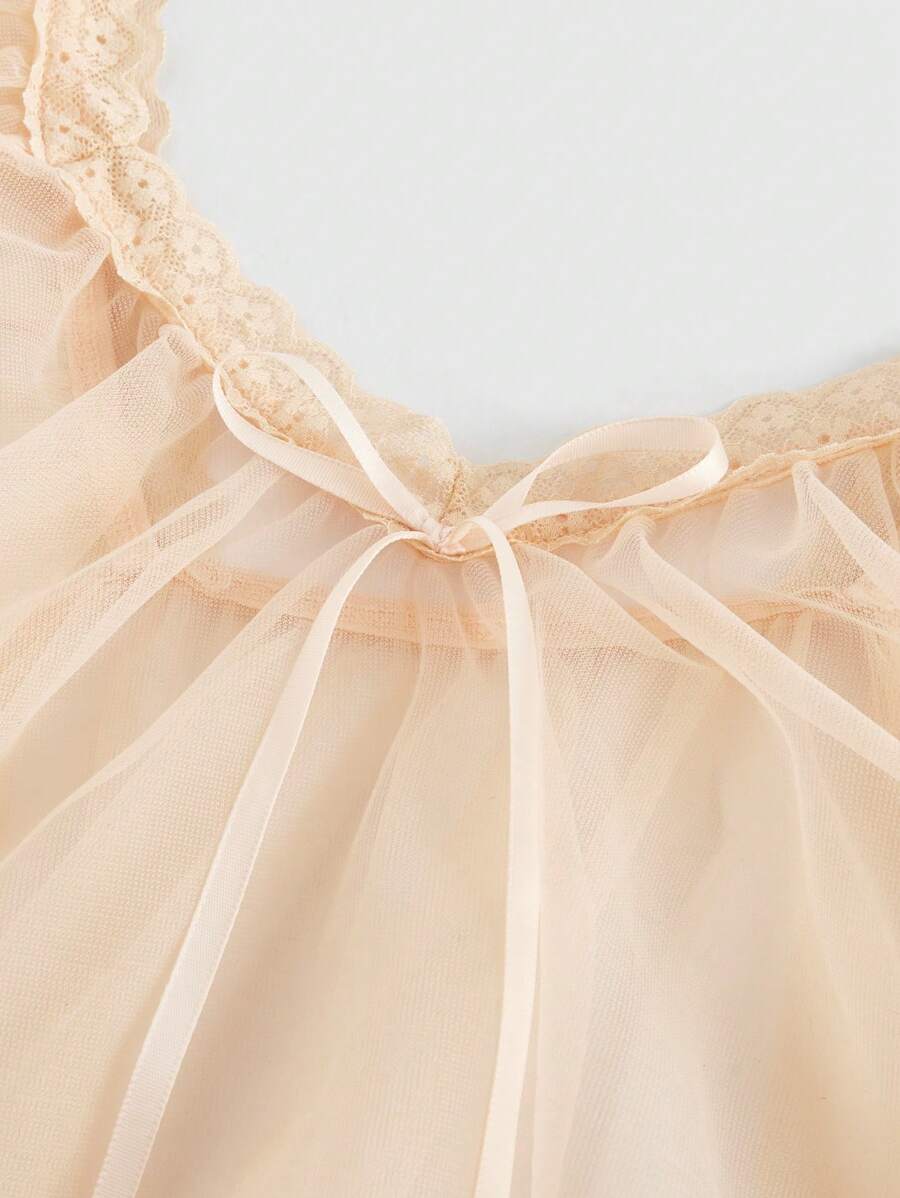 Kawaii Cute Loose Sheer Dress, Mesh Lace Patchwork Bow Mini Dress, Sexy Tulle Dress Set