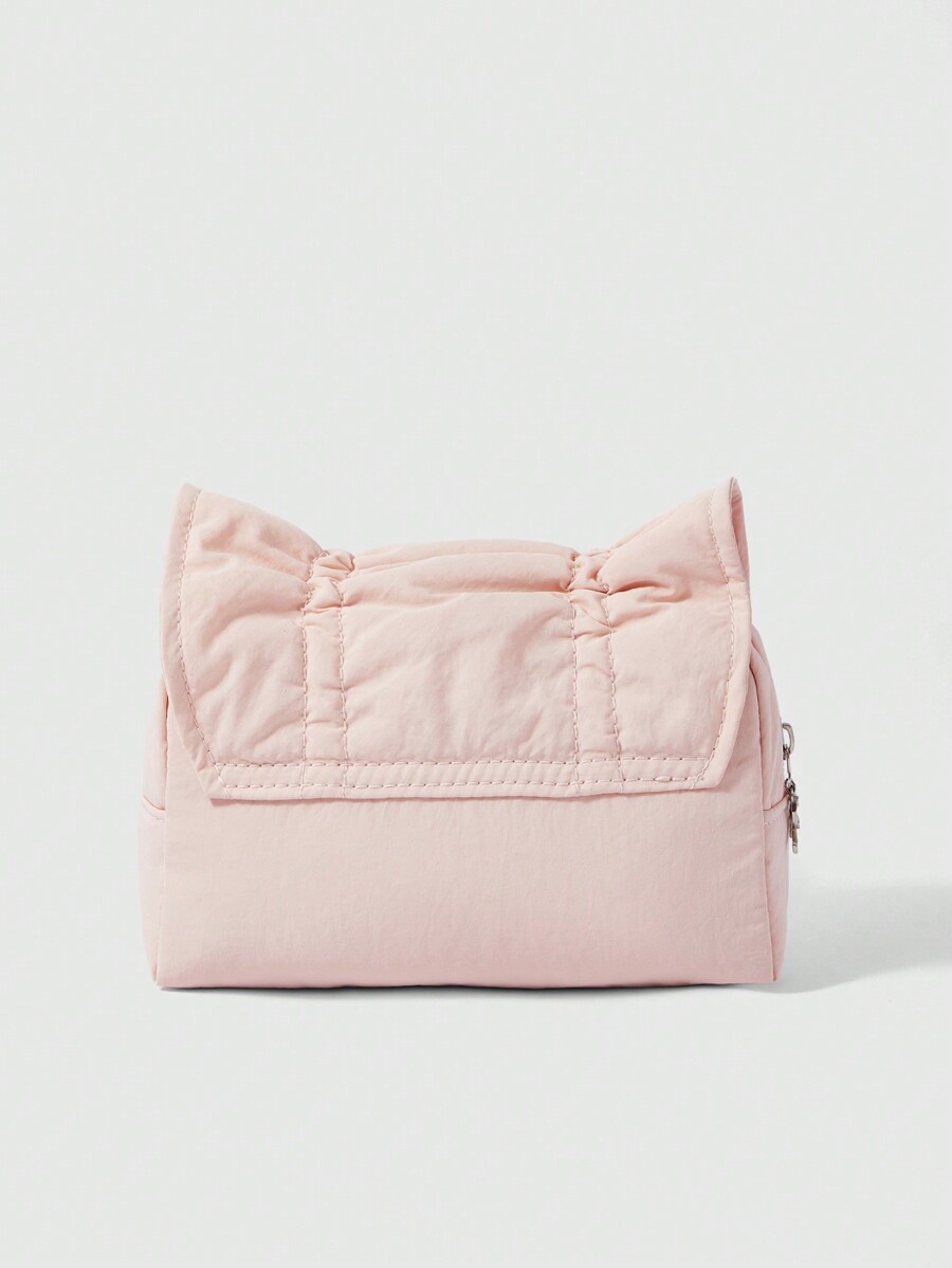 Kawaii Korean Ins Style Retro Cute Pink Drawstring Bow Large Capacity Portable Makeup Bag Pencil Case + Bow Pull Tab