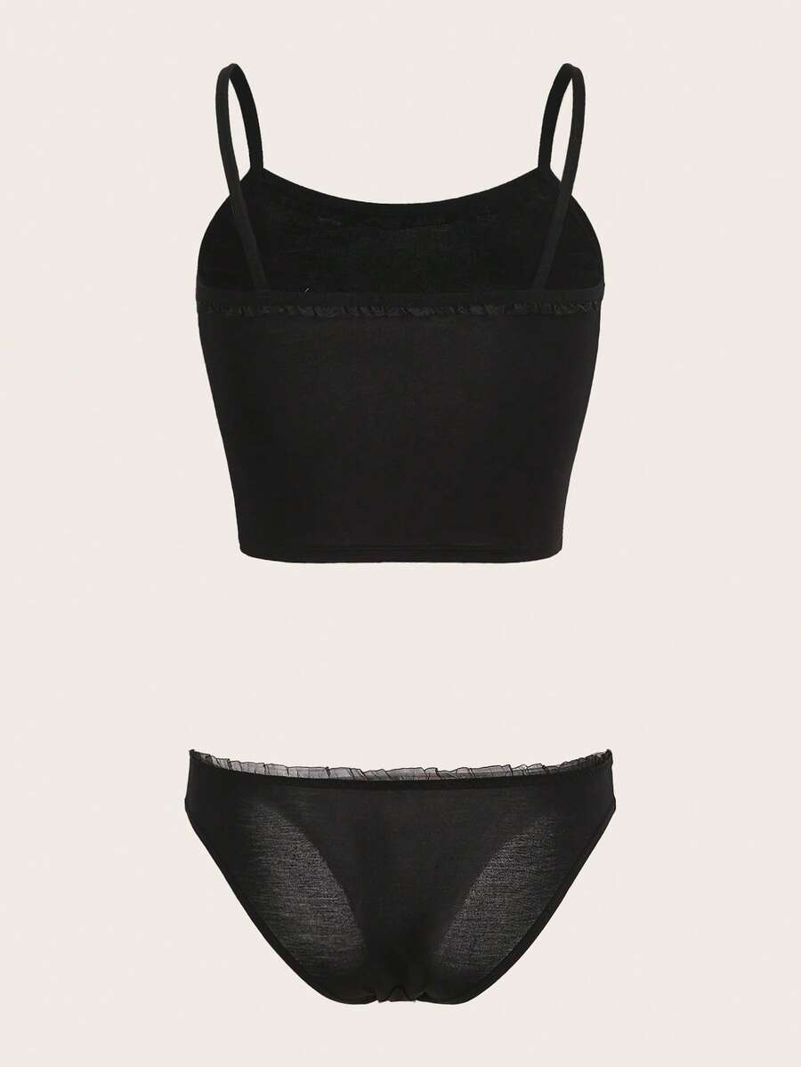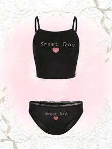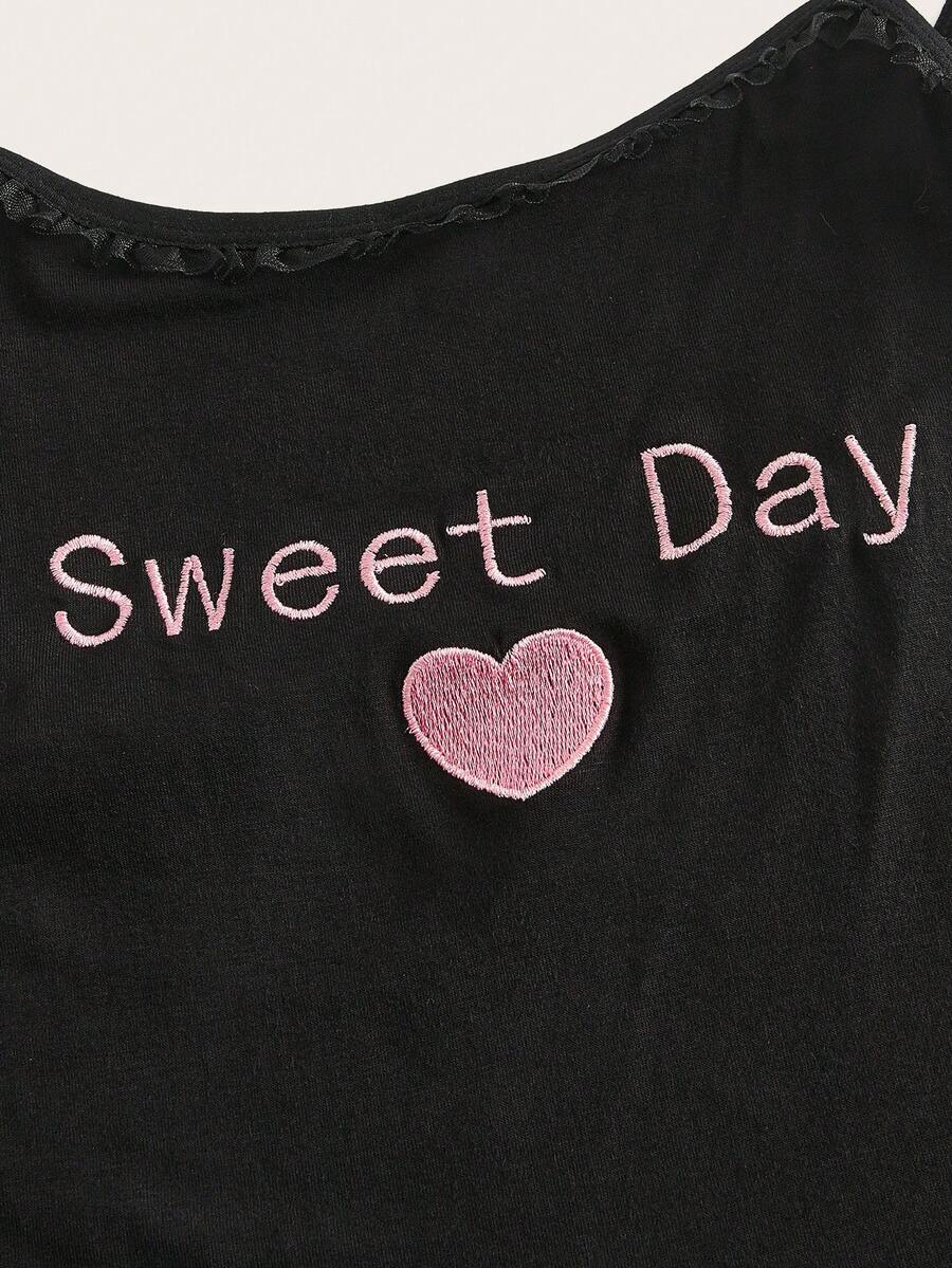 Kawaii Letter Heart Embroidery Frill Trim Lingerie Set