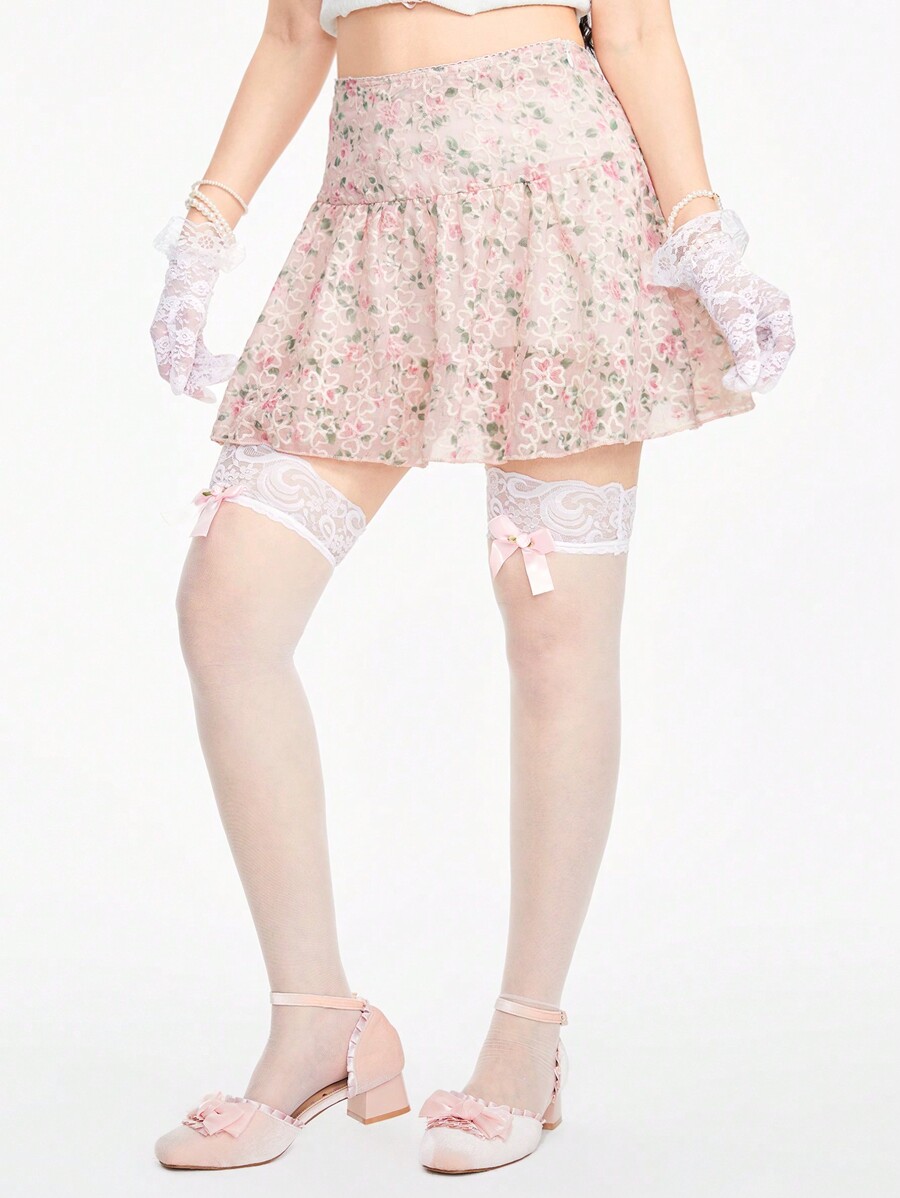 Kawaii Minimalist Sexy Style Lovely Sweetheart Pink Embroidery Jacquard Women's Mini Skirt