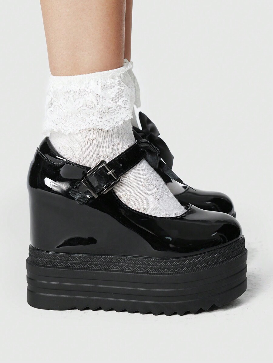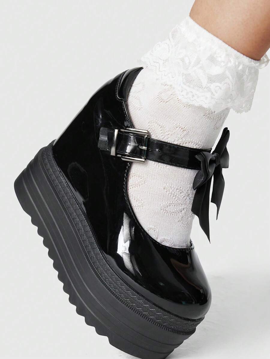 Kawaii New Fashion Shallow Round Toe Waterproof Platform Super High Chunky Heel Women Shoes, Butterfly Buckle Shoes For Spring And Autumn Spring Shoes Spring Break Easter