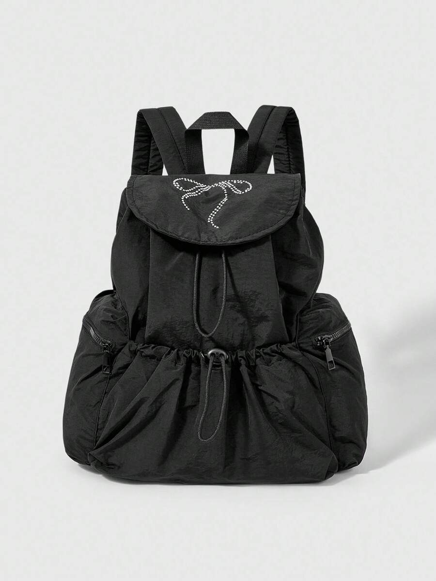 Kawaii New Nylon Black Water-Resistant Large Capacity Backpack, Suitable For Students, Commuting, School