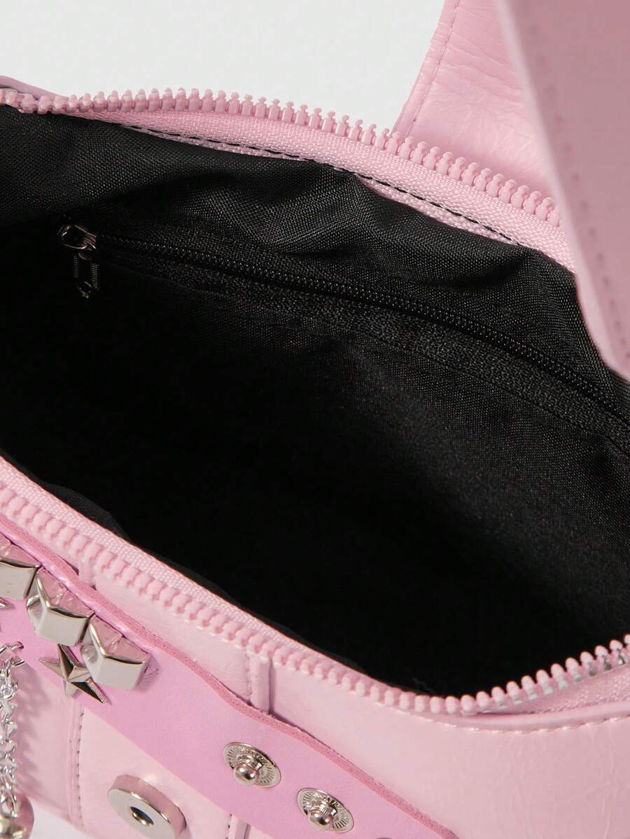 Kawaii New Sweet And Cool Women Shoulder Bag, Punk Motorcycle Bag With Chain Pendant, Cute Shoulder Bag, School Valentines