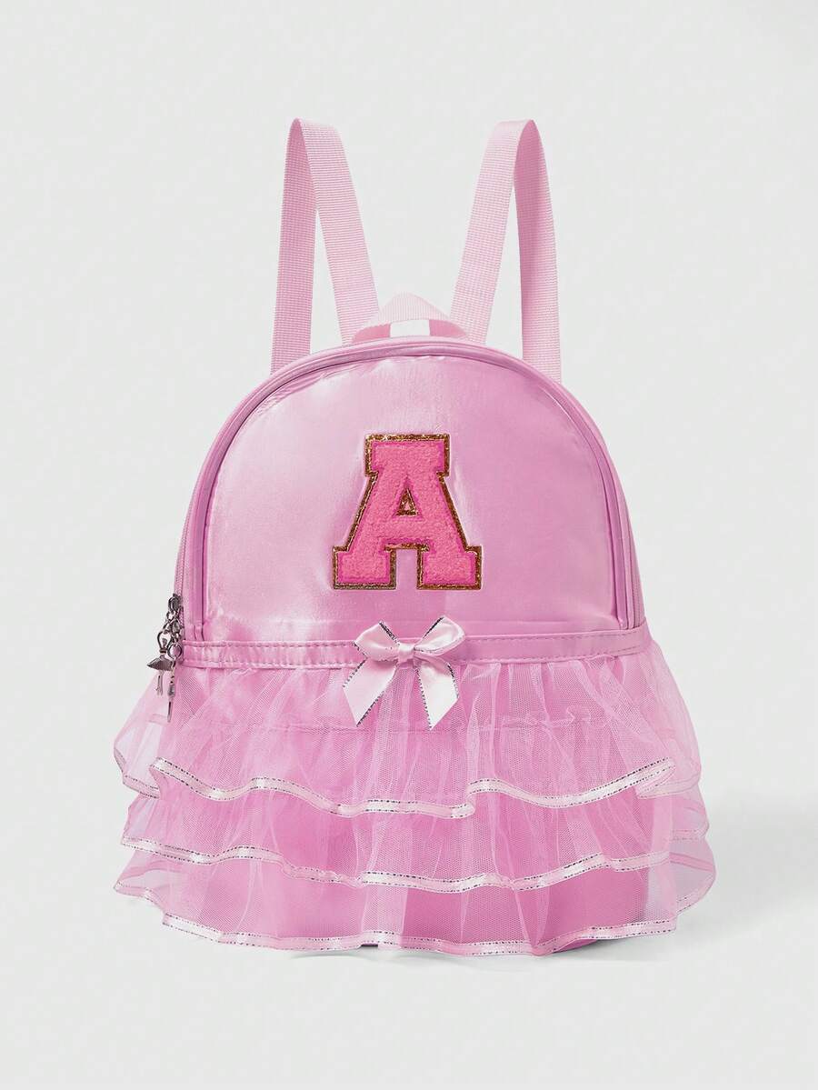 Kawaii Nylon Zipper Closure A-Z 26 Letters Fashion Lace Dance Bag, Dance Ballet Bag, Practice Double Shoulder Latin School Bag Backpack, Suitable For Daily Use,To Students And Classmates,Essential For Returning To School (Zipper Random)