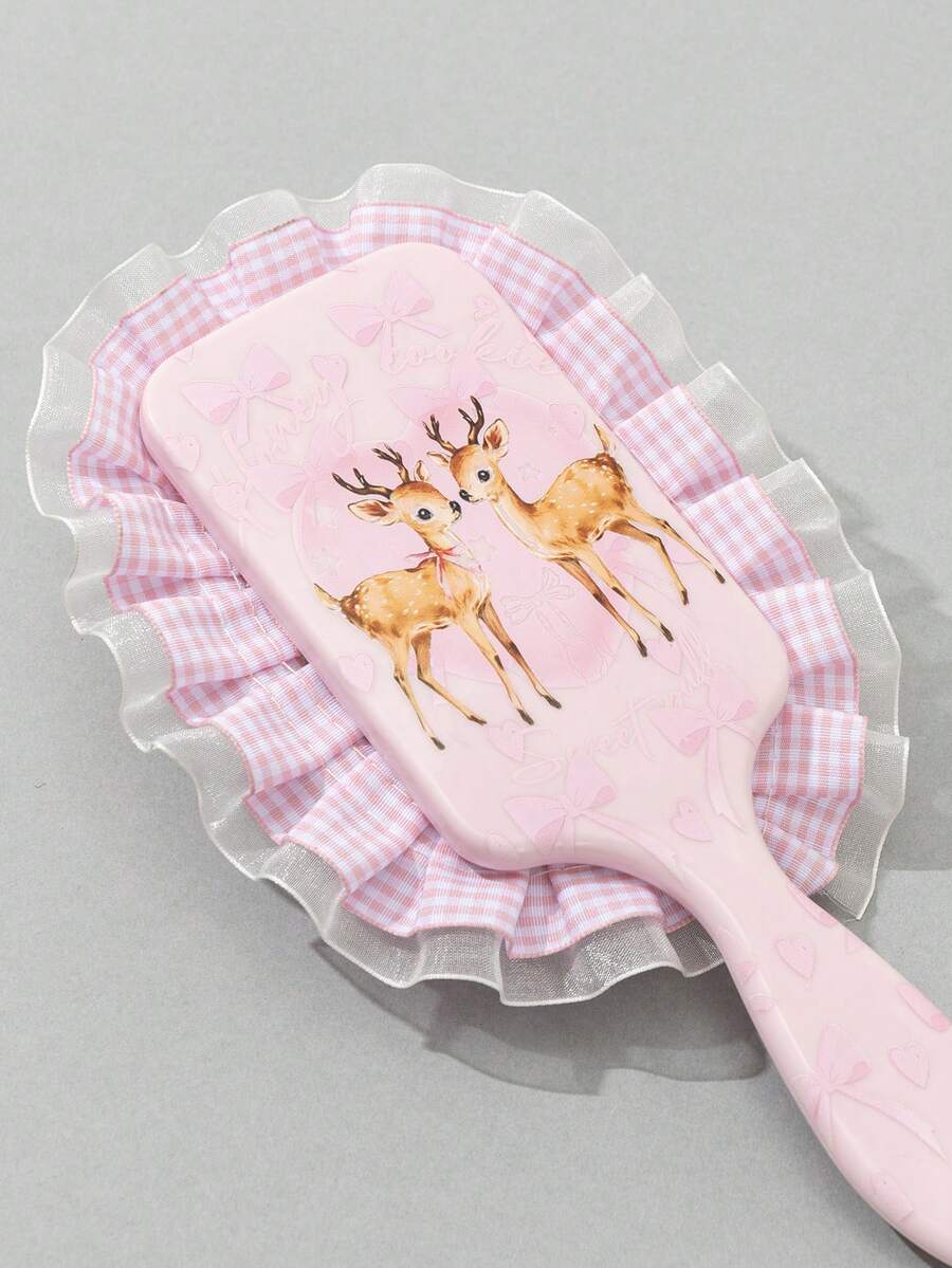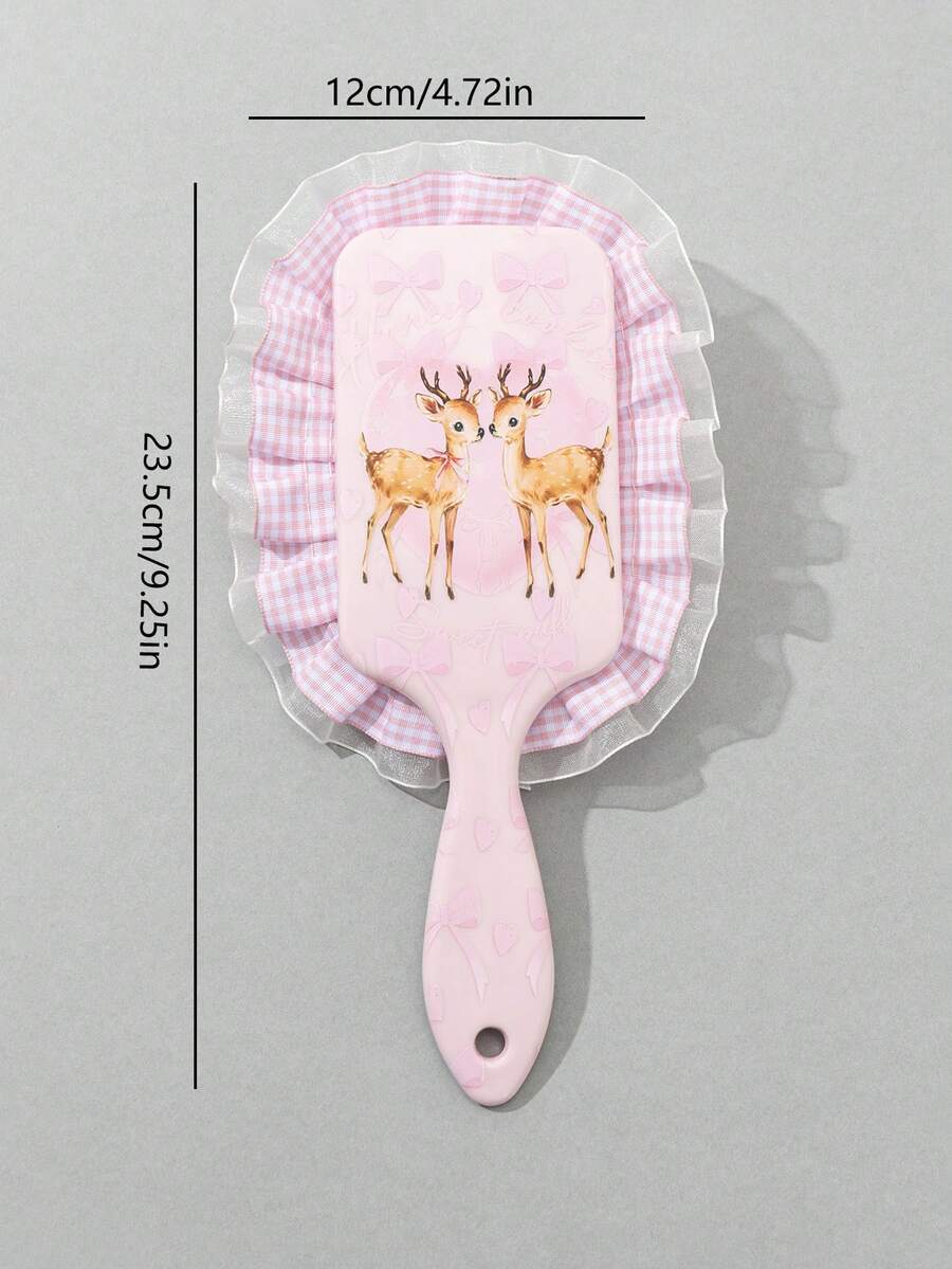 Kawaii Pink Lace Checkered Massage Air Cushion Hair Comb With Deer Pattern