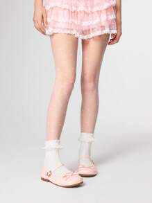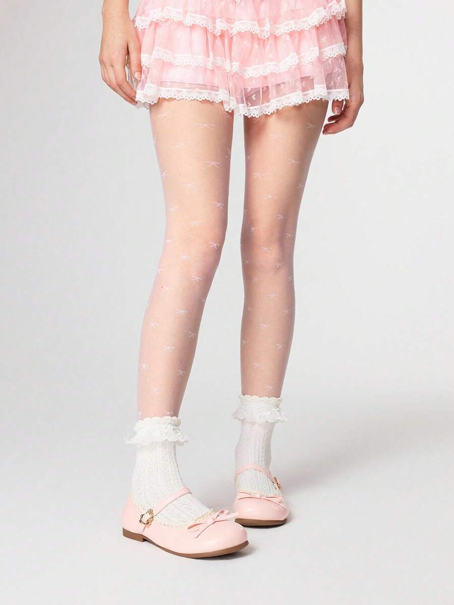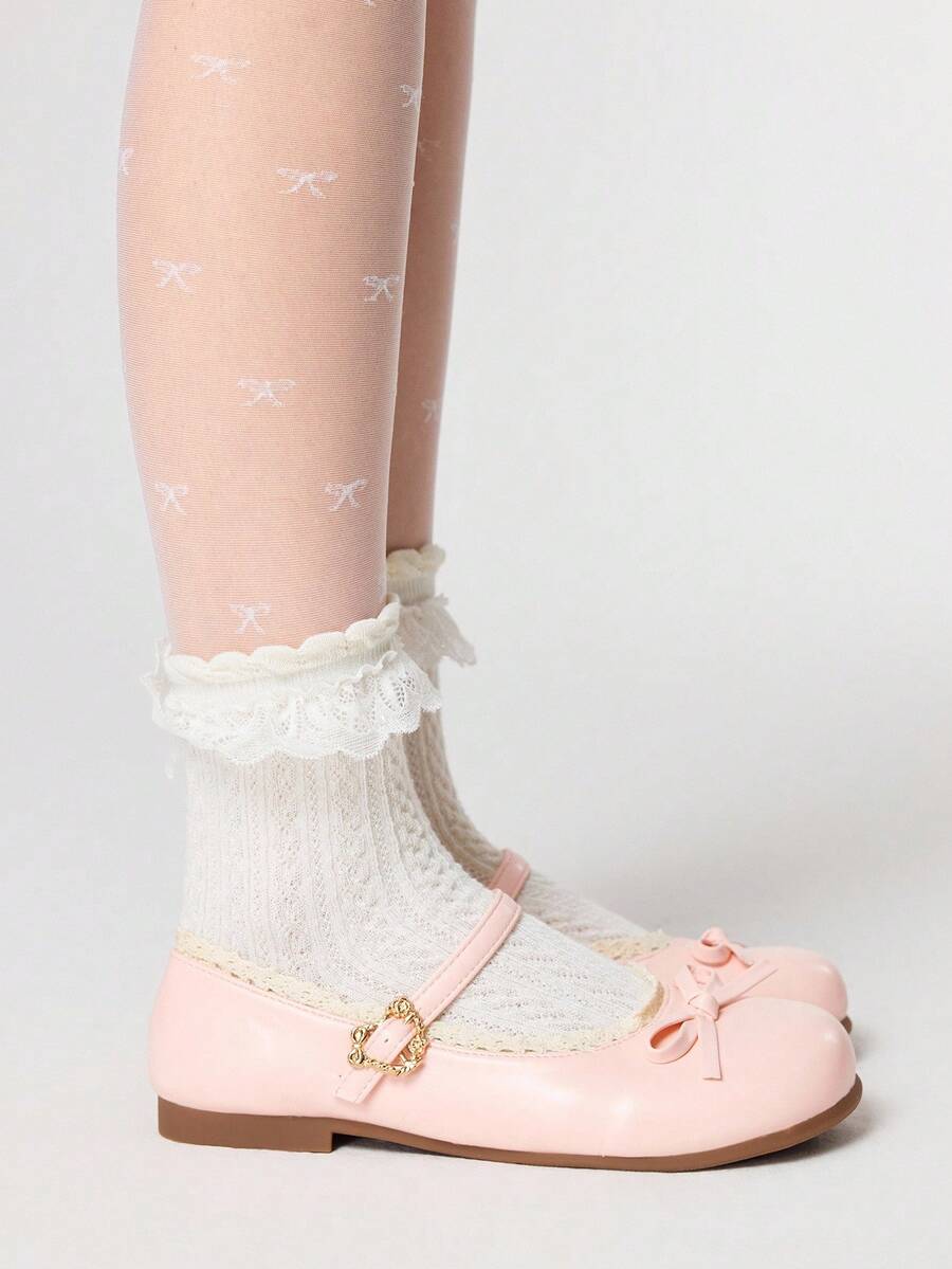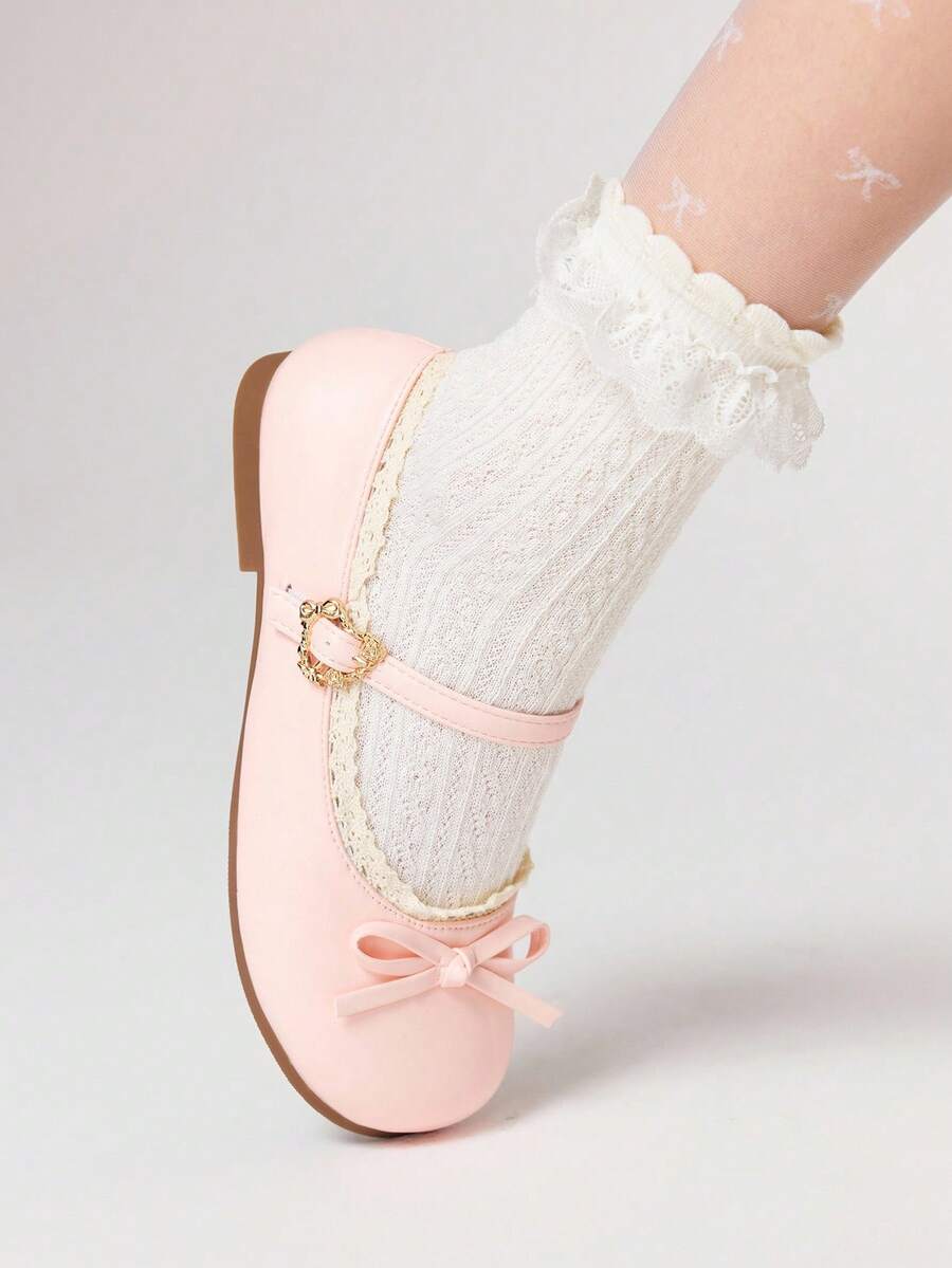 Kawaii Pink Mary Jane Shoes, Closed Toe Lolita Shoes With Bow & Lace, Ballet Flats For Women