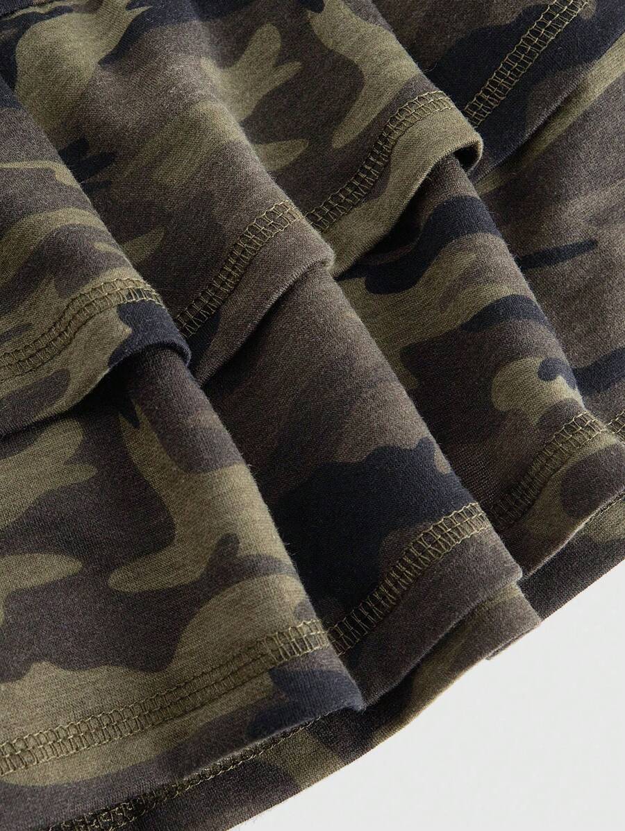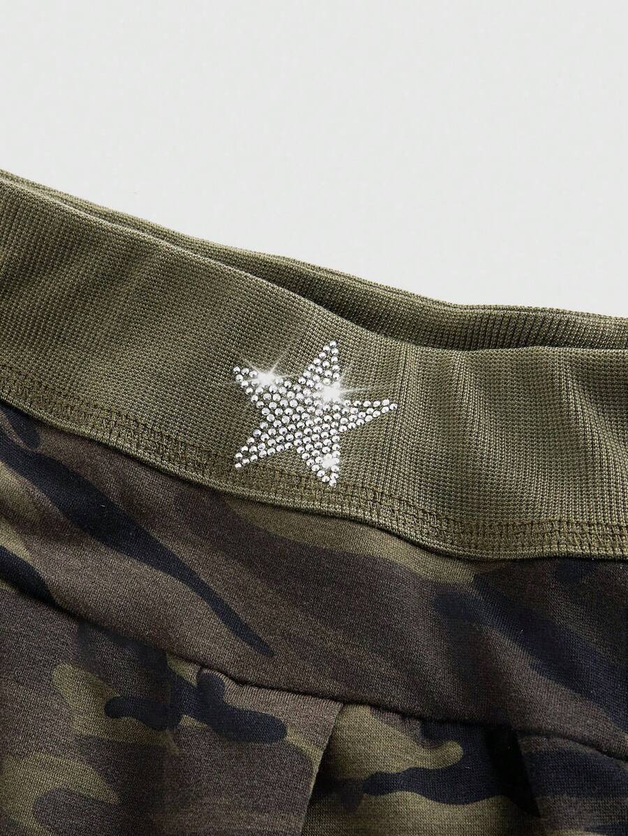 Kawaii Plus Size Camouflage & Star Rhinestone Decor Skirt