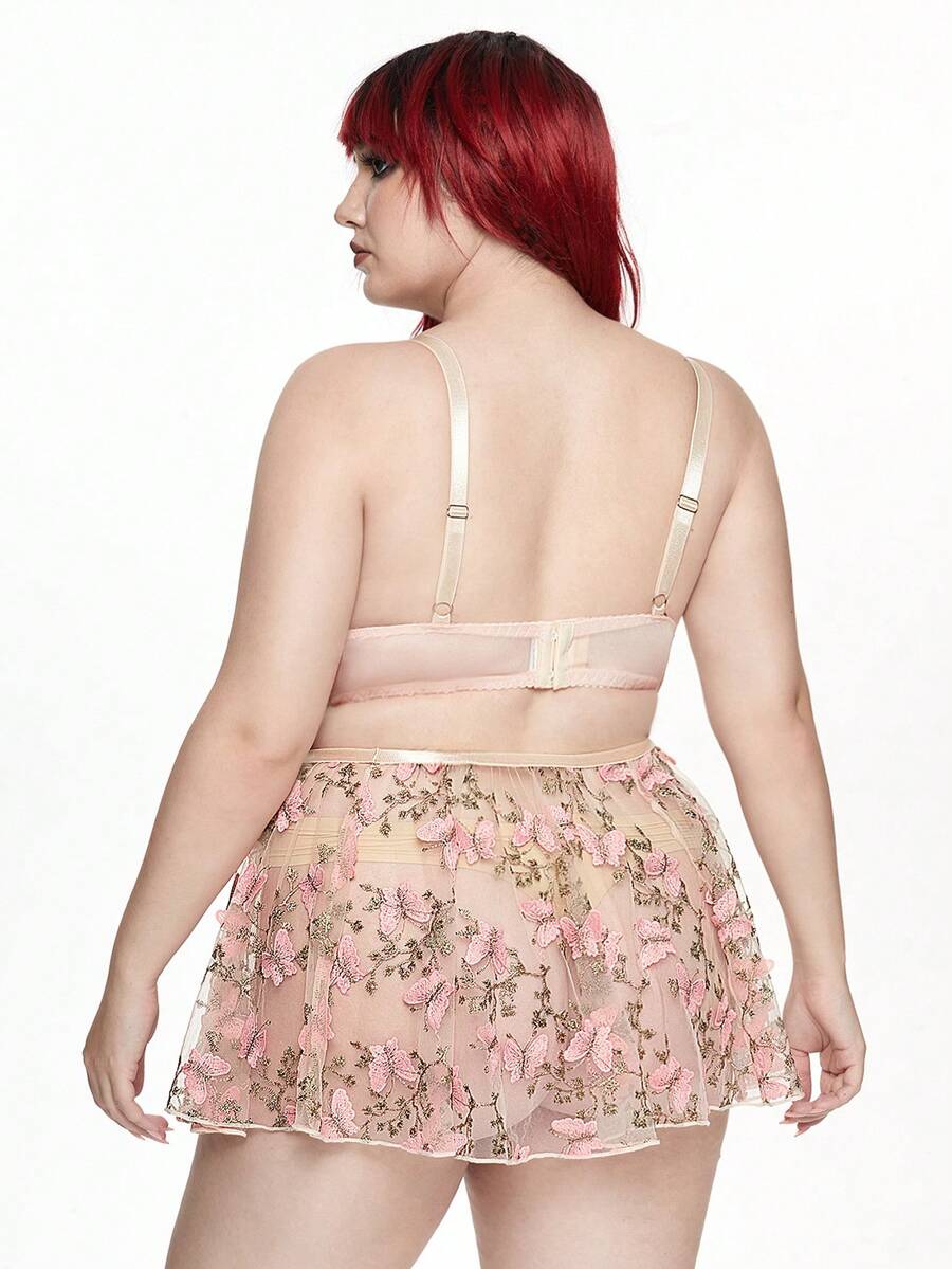 Kawaii Plus Size Sexy Butterfly Embroidery Wireless Lingerie 2pcs Set
