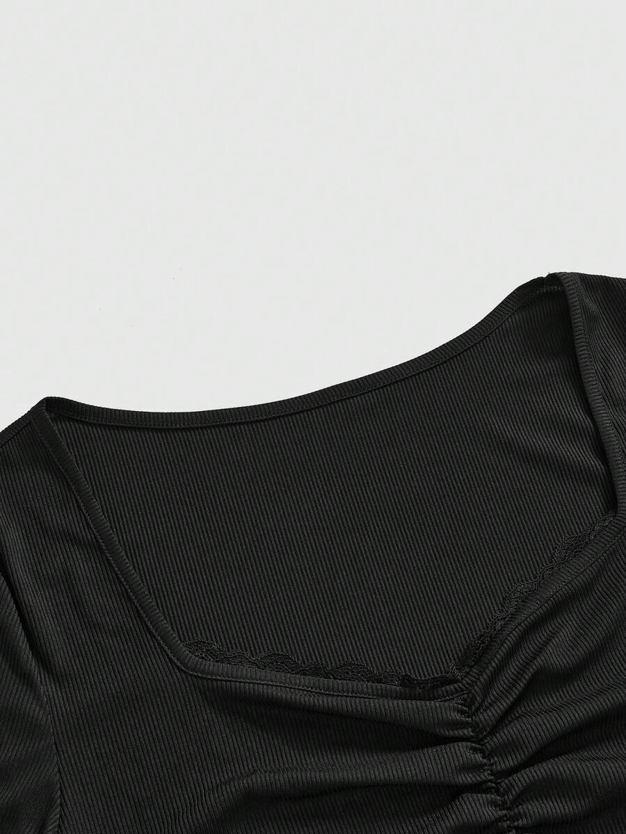 Kawaii Plus Size Women Solid Color Ruffle Sweetheart Neck Short Sleeve Casual T-Shirt, Summer
