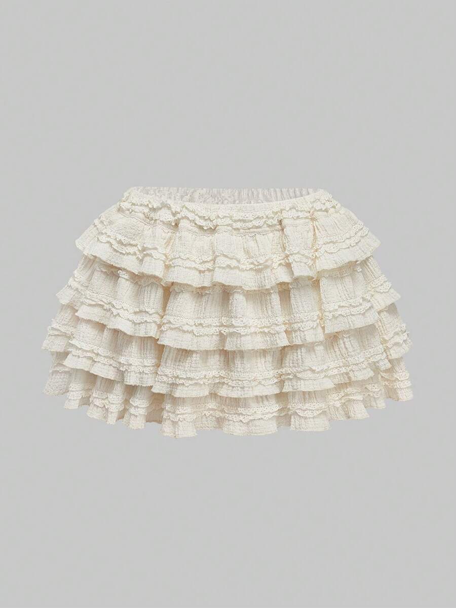 Kawaii Plus Size Women Textured Fabric Sweet Cake Hem Patchwork Low Waist Mini Skirt, Suitable For Multiple Occasions, Summer