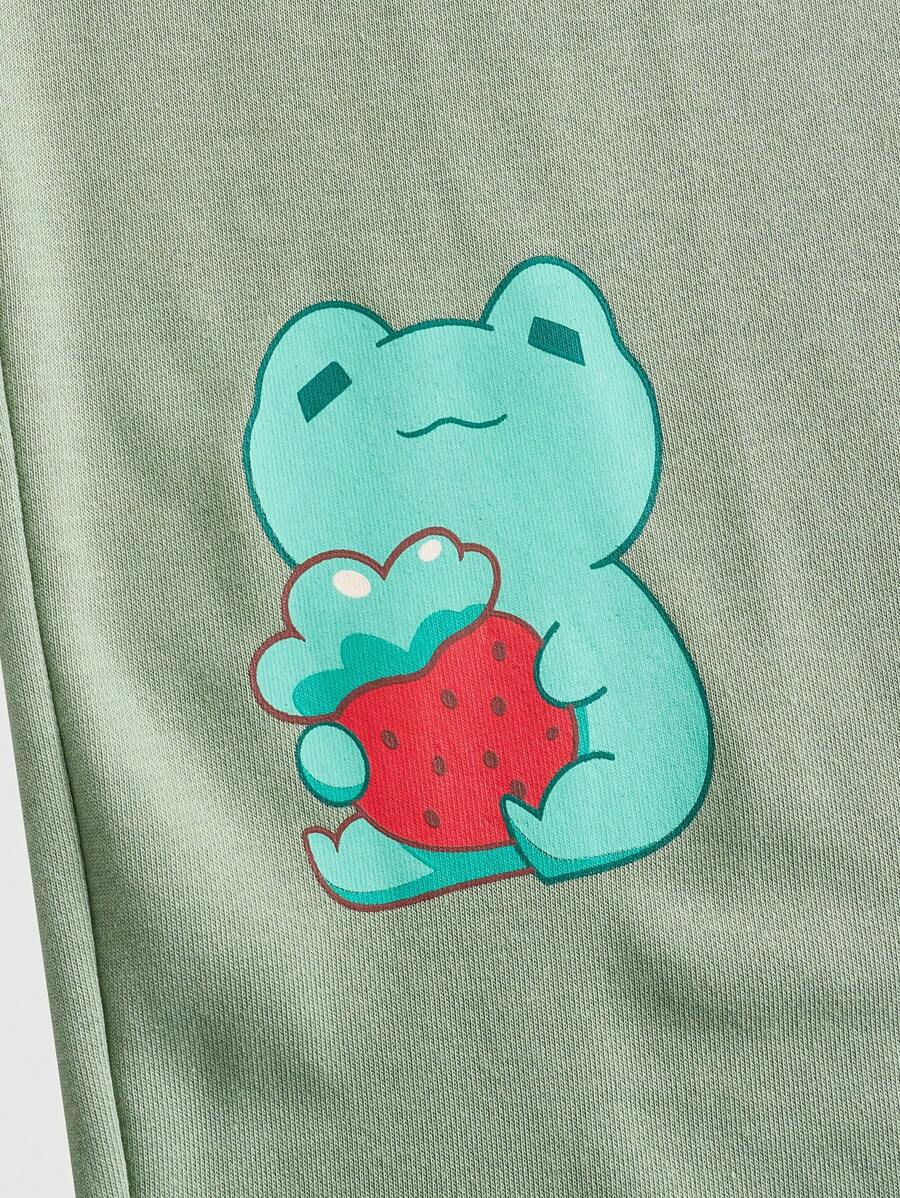 Kawaii Plus Size Women's Cute Frog Mushroom Printed Drawstring Waist Long Pants