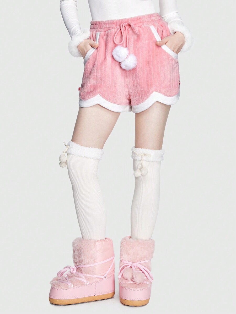 Kawaii Pom Pom Decor Drawstring Waist Shorts