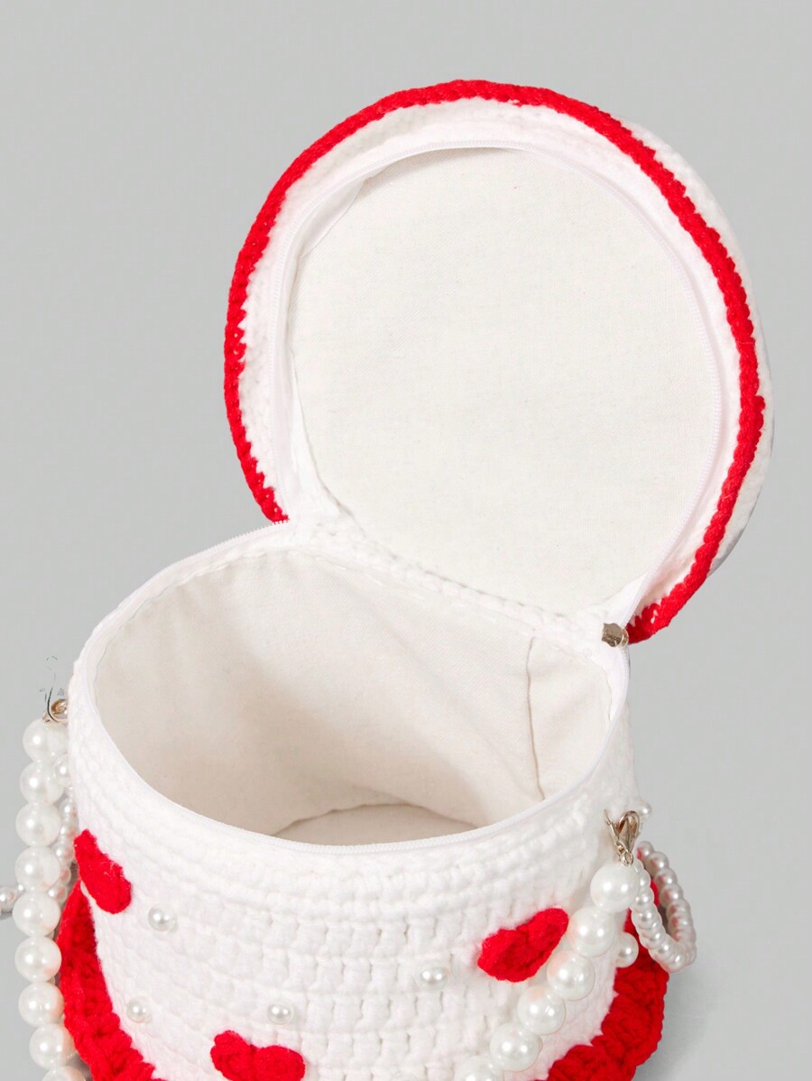Kawaii Simple Casual Tote Bag For Women With Colorblock Design And Faux Pearl Decor Valentines