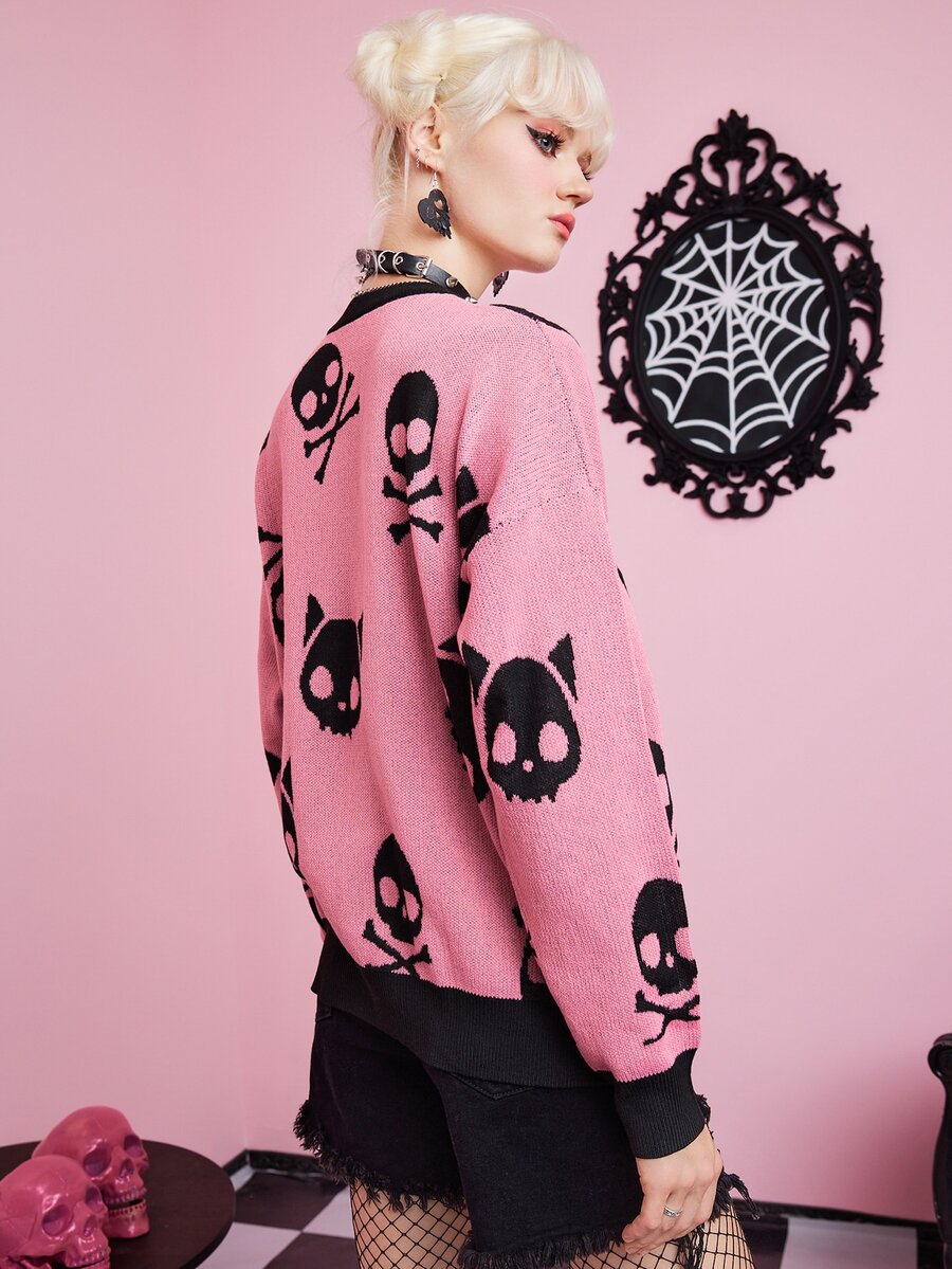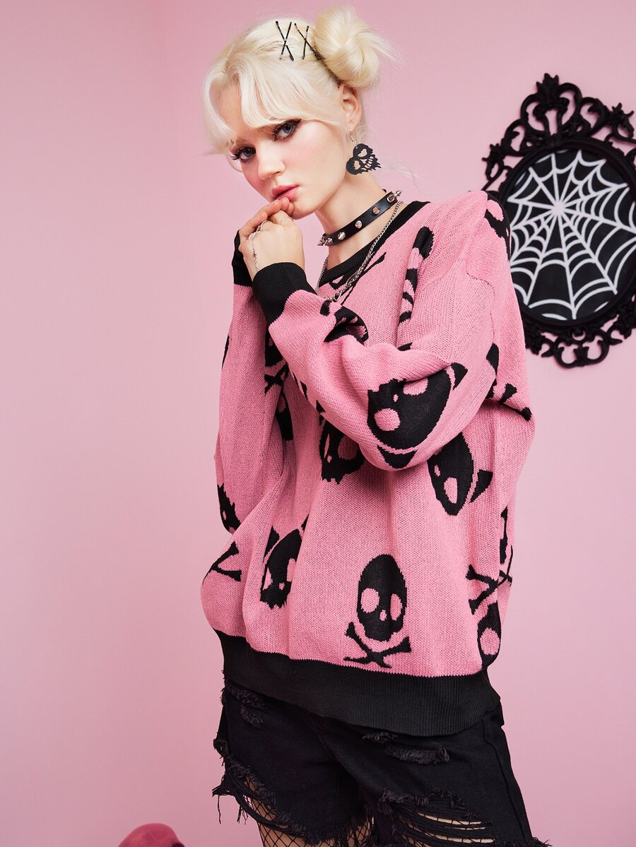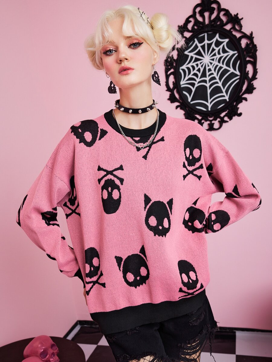 Kawaii Skull Pattern Drop Shoulder Sweater