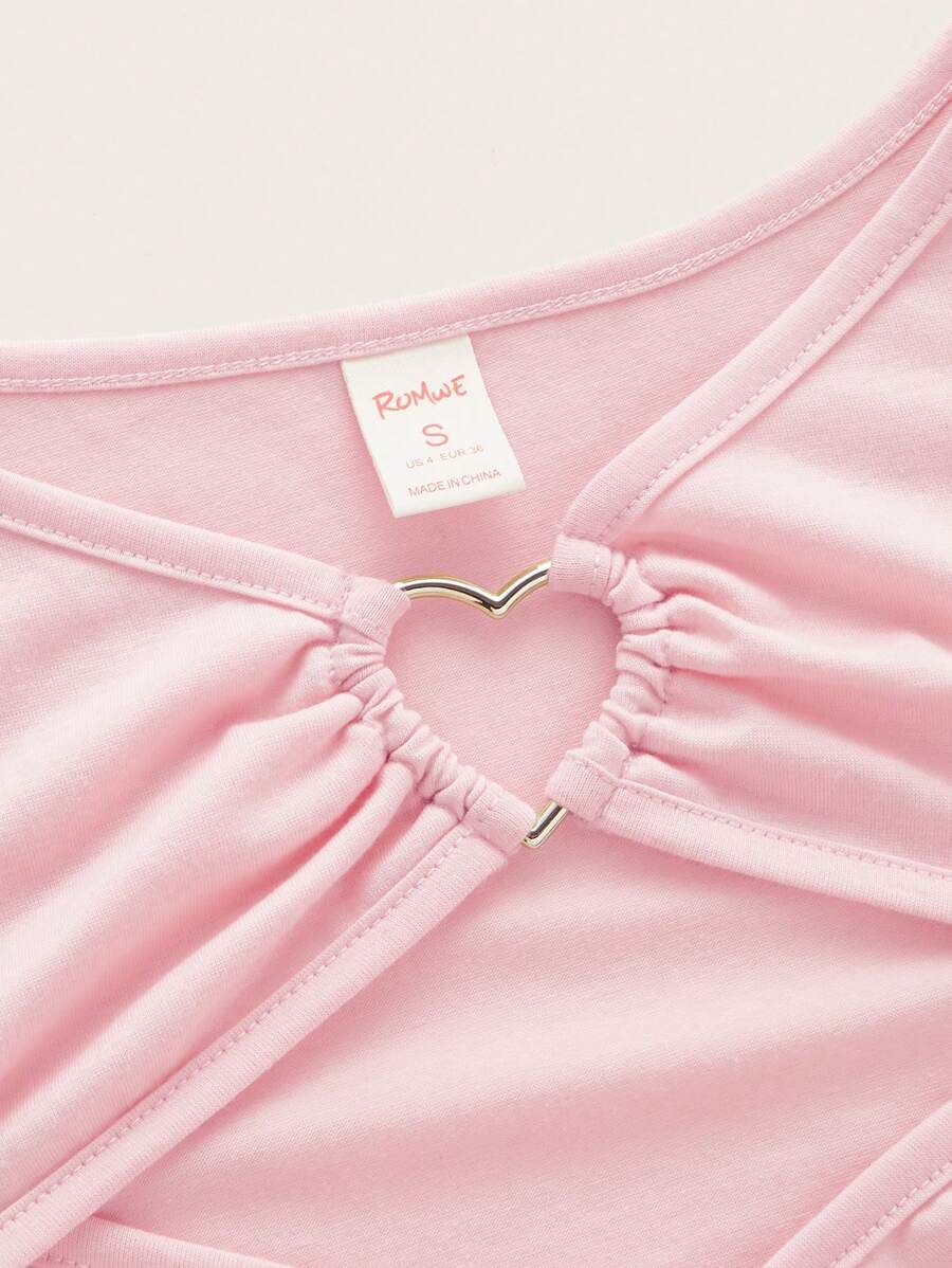 Kawaii Solid Heart-ring Linked Cut Out Ruched Tee