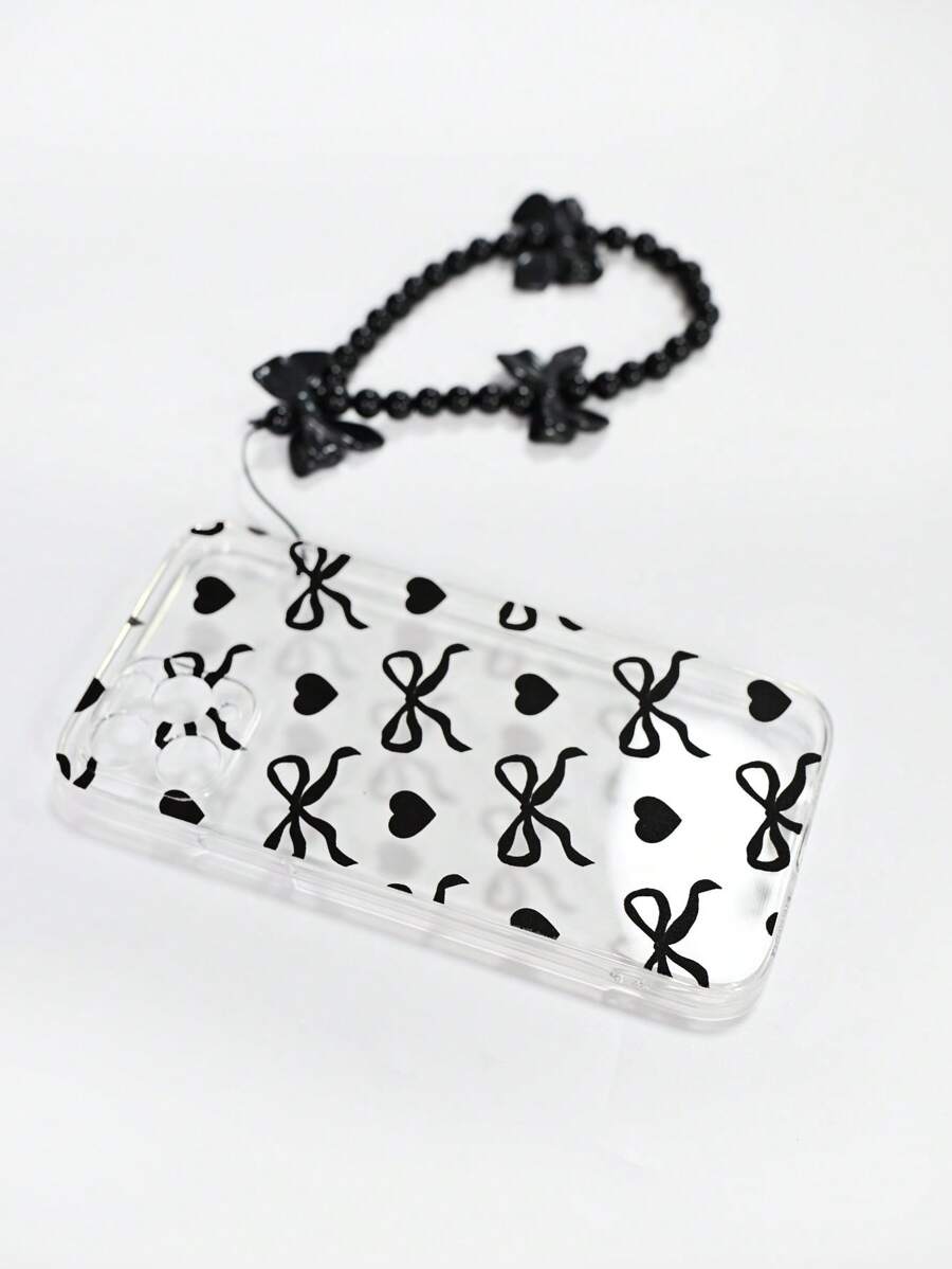 Kawaii Stylishly Sweet Spicy Black Heart Bow Pendant Silicone Protective Case With Black Border, Compatible With IPhone 12/13/14 Series