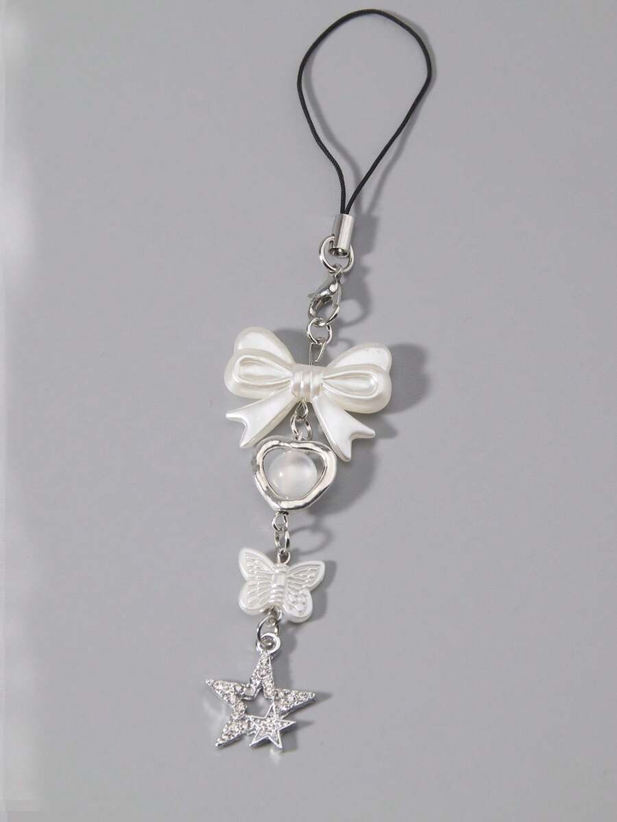 Kawaii Sweet Star, Bow Detail, Heart, Faux Pearl Bowknot Mobile Phone Lanyard, Bag Pendant, Summer DIY Present