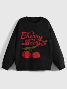 Kawaii Valentine'S Day Cherry Plus Size Women'S Sweater Pullover