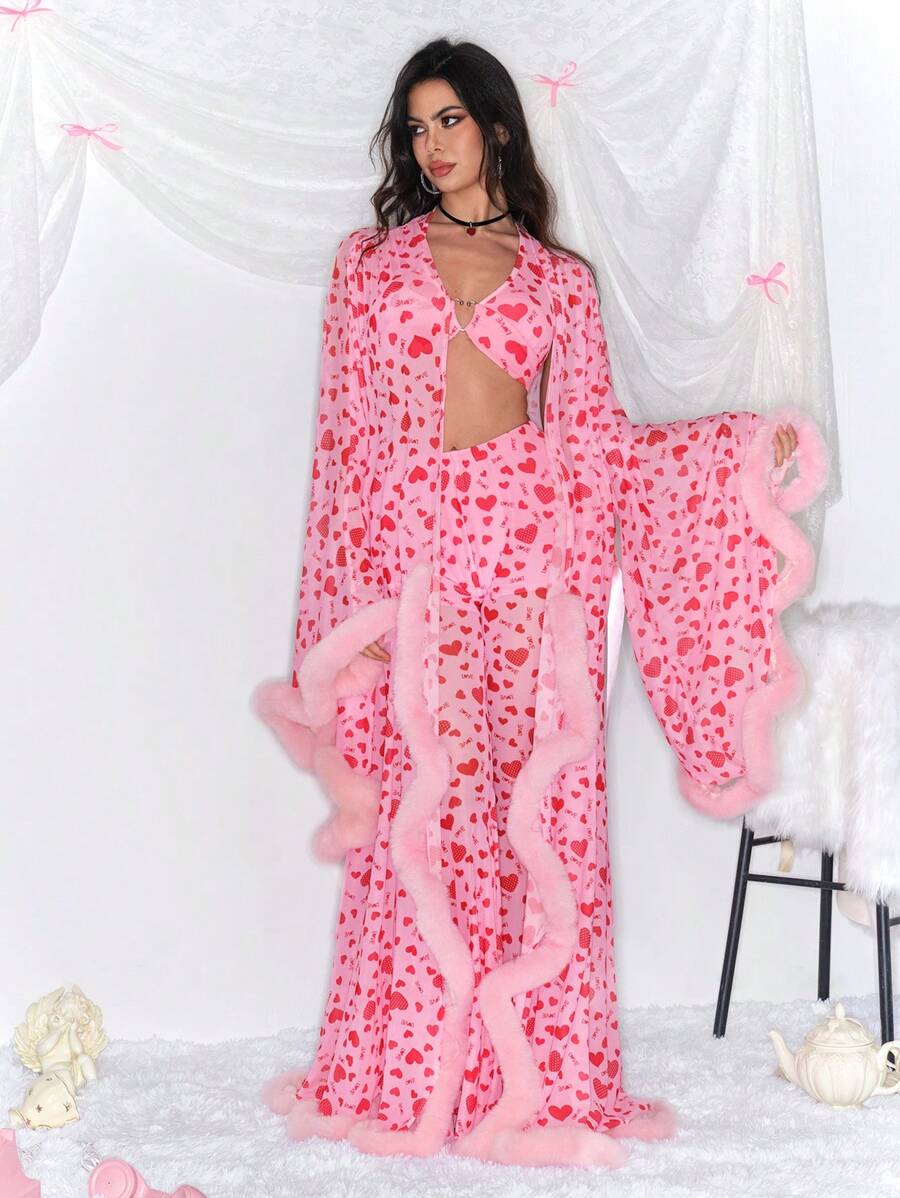 Kawaii Valentine's Day Faux Fur & Mesh Patchwork See-Through Oversized Women Blouse/Cardigan