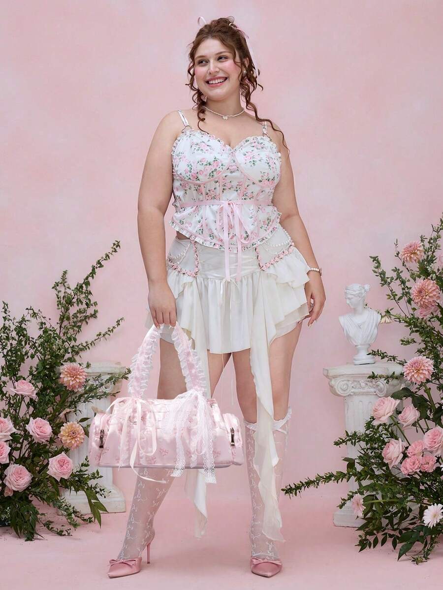 Kawaii Vintage Cute Bowknot Pattern Lace Decor White Round Handbag, Shoulder Boston Bag For Women, Girly Style