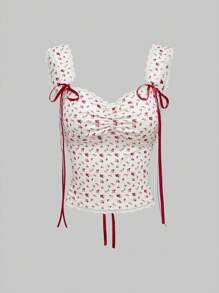 Kawaii Vintage Ditsy Floral Tank Top With Ribbon Tie Back, Elegant For Valentine's Day