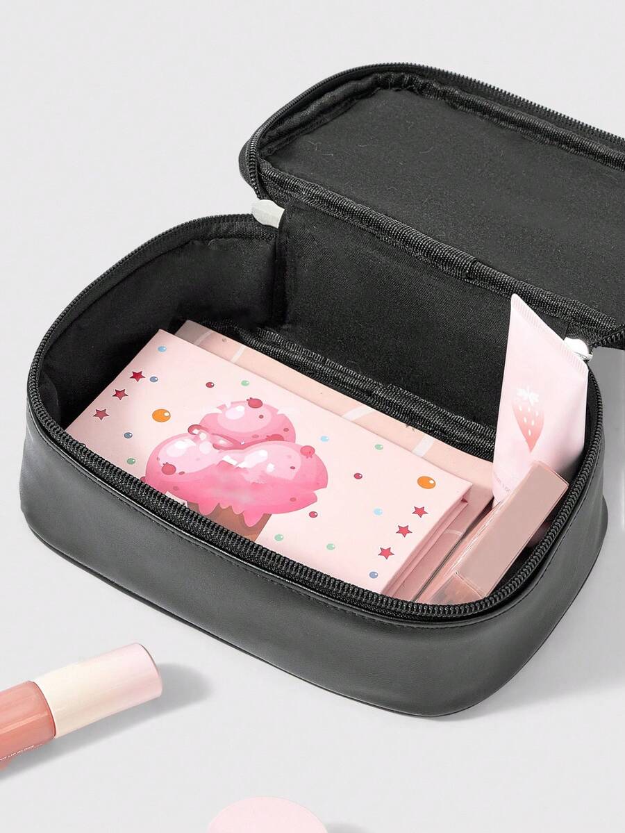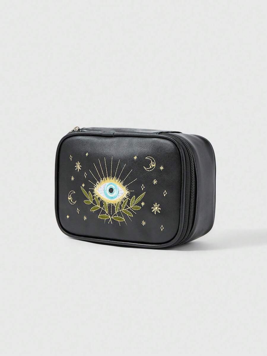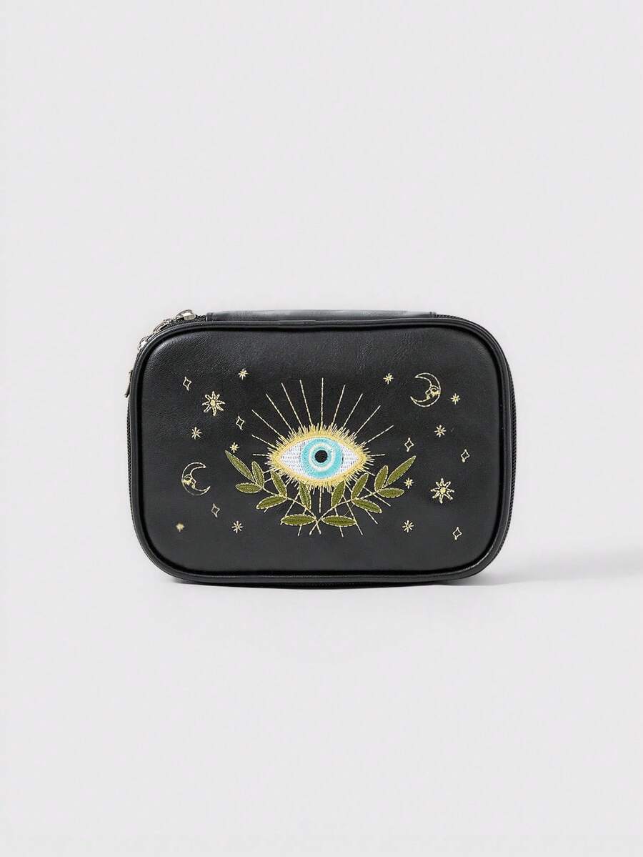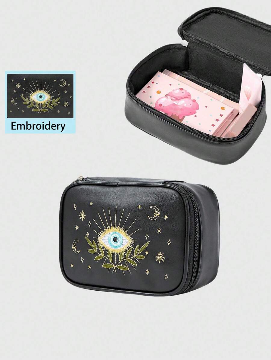 Kawaii Vintage Embroidered PU Square Portable Cosmetic Bag