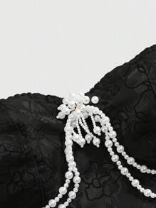 Kawaii Vintage Victorian Lace Satin Pearl Brooch Decor Blouse, Women's Top In Puff Pink