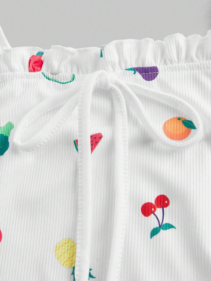 Kawaii Women\ Pajama Set With Colorful Fruit Print And Cami Strap Design For Summer