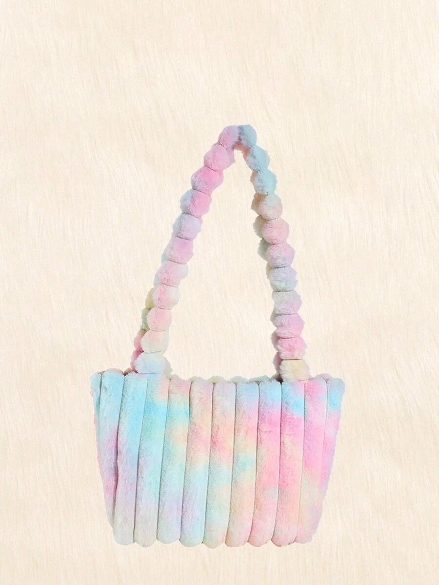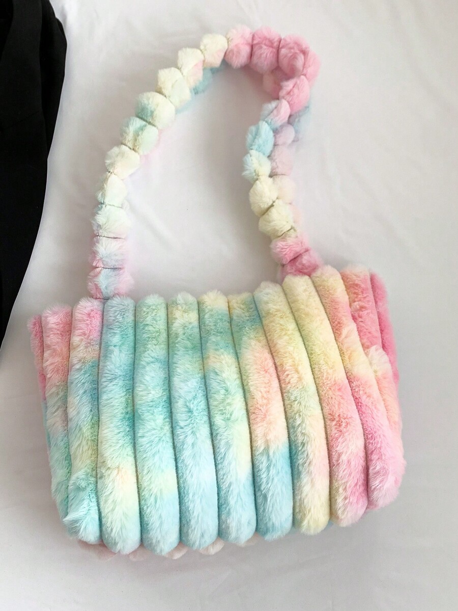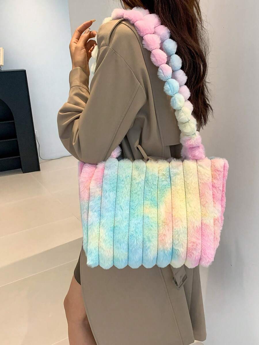 Kawaii Women'S Plush Color Block Tote Bag