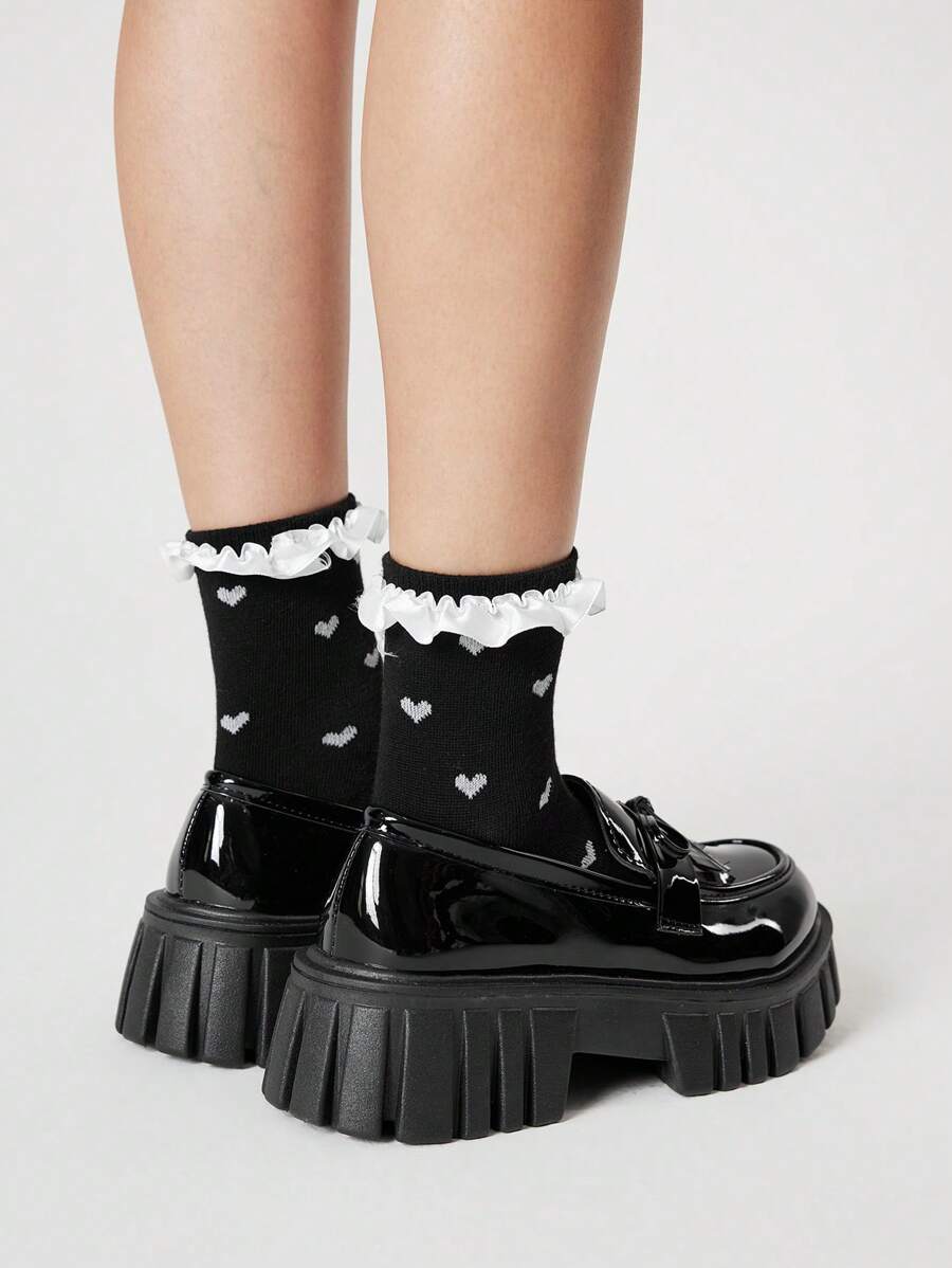 Kawaii Women Shoe Black Loafers Closed Toe Slip-On Mules Mary Janes Preppy Style Soft-Sole Shoes Women's Wedge Heels & Thick-Sole Shoes