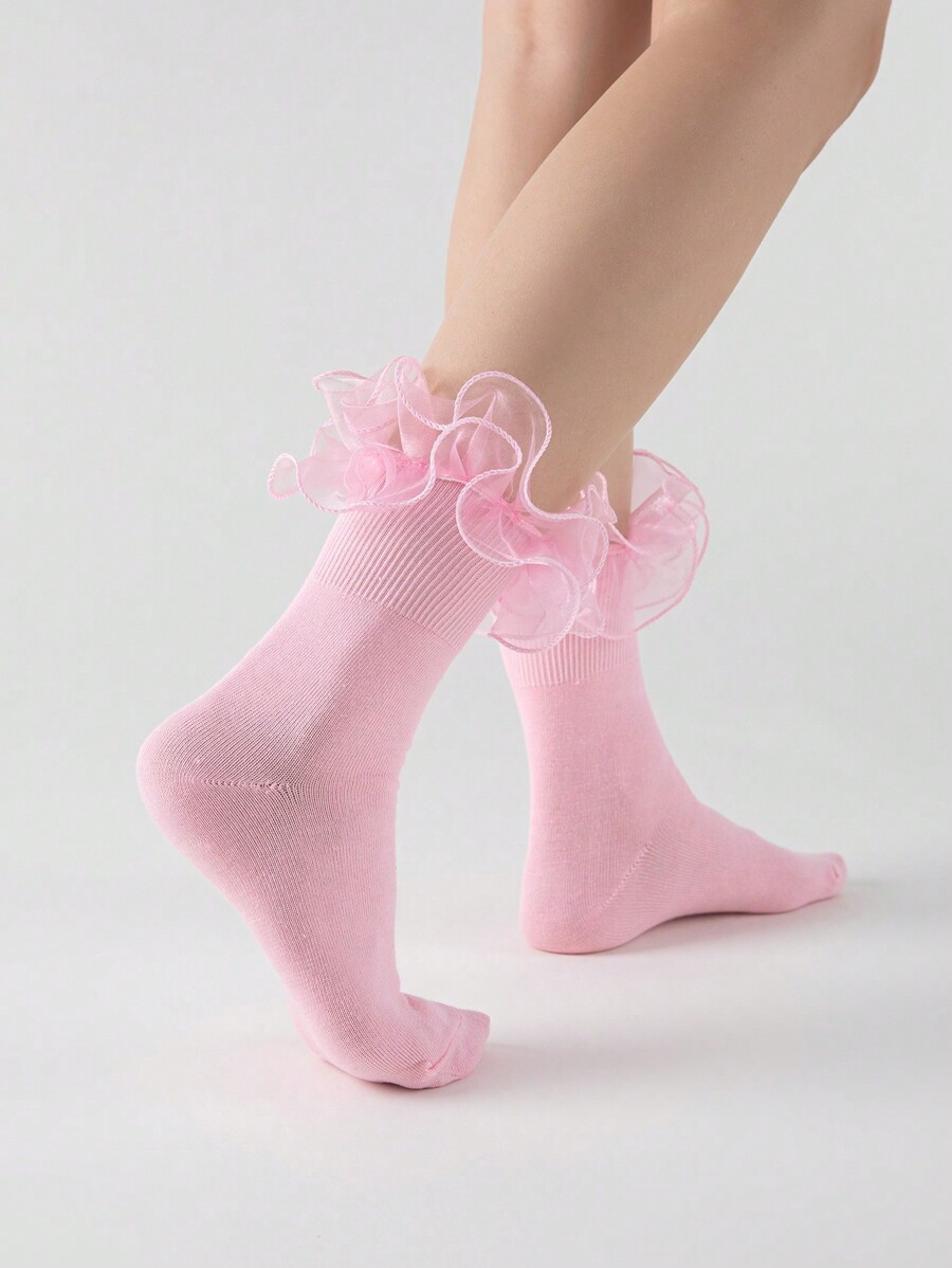 Kawaii Women's 3D Floral Lace Crew Socks