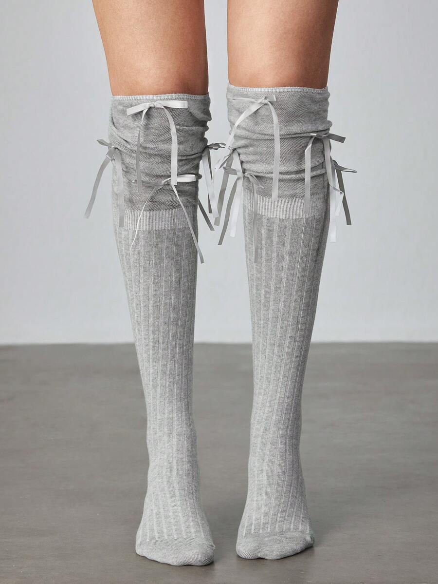 Kawaii Women's Bow Decor Ruffle Over-The-Knee Socks