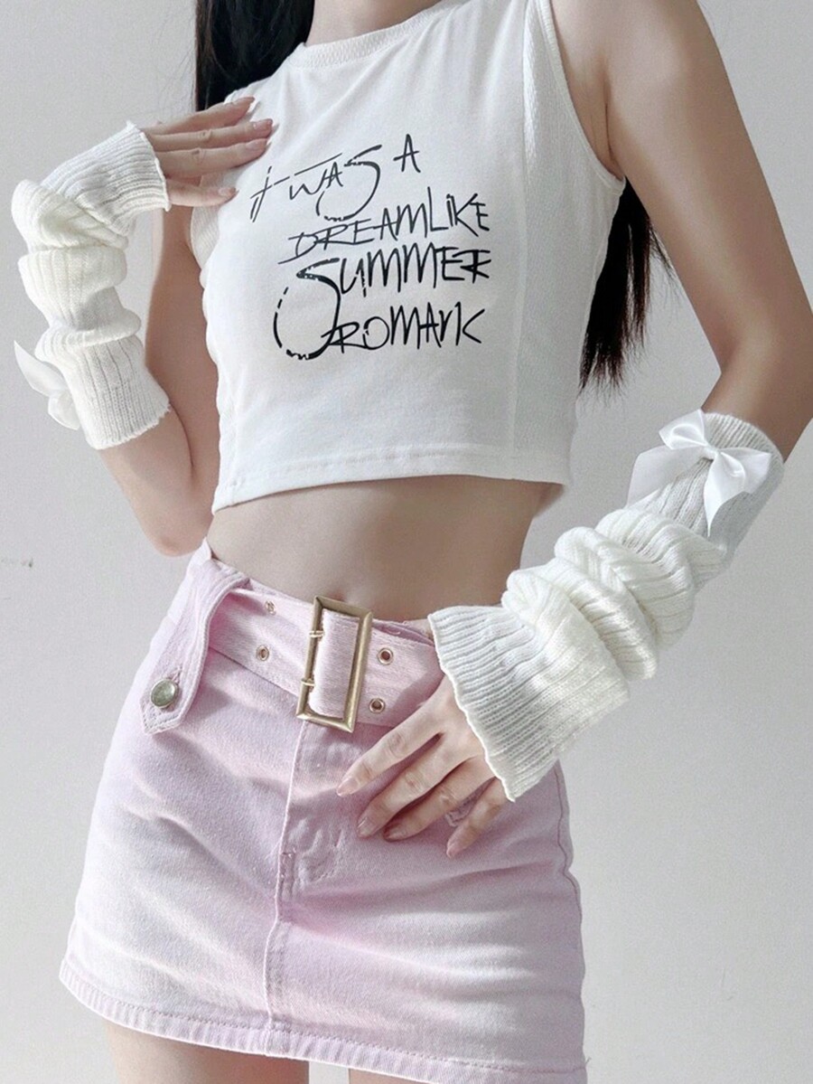 Kawaii Women's Bowknot Ruffled Knitted Arm Sleeves, College Style