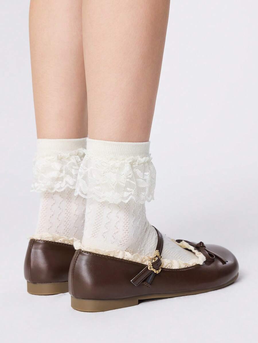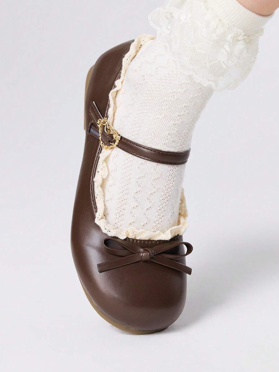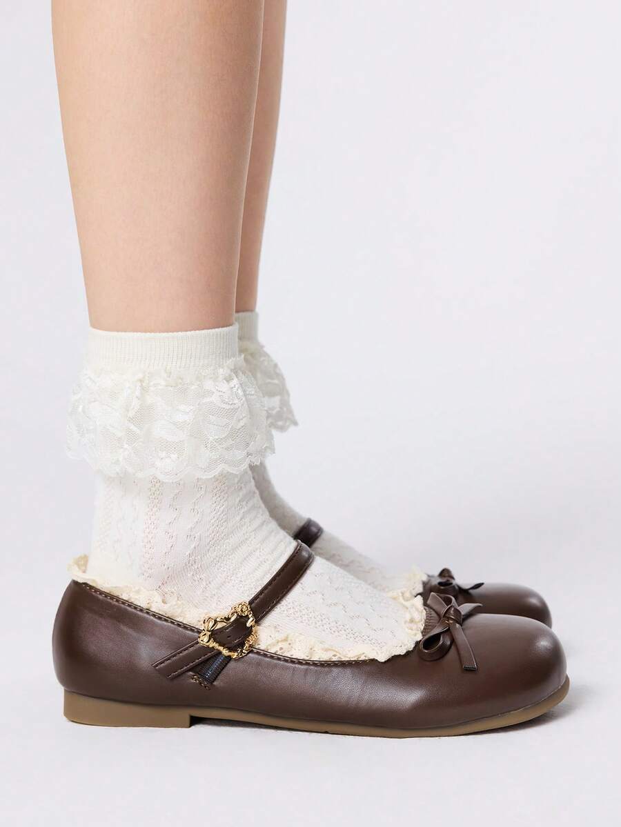 Kawaii Women's Brown Loafers, Closed Toe Mary Jane Pumps, Bow & Lace Lolita Ballet Flats