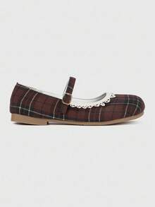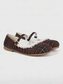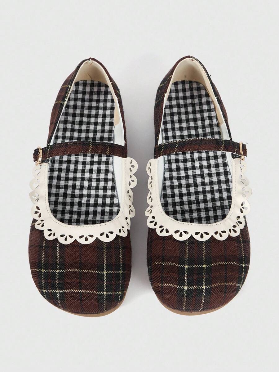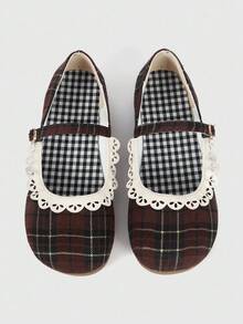 Kawaii Women's Brown Loafers, Closed Toe Mary Jane Shoes, Bow Lace Lolita Ballet Flats